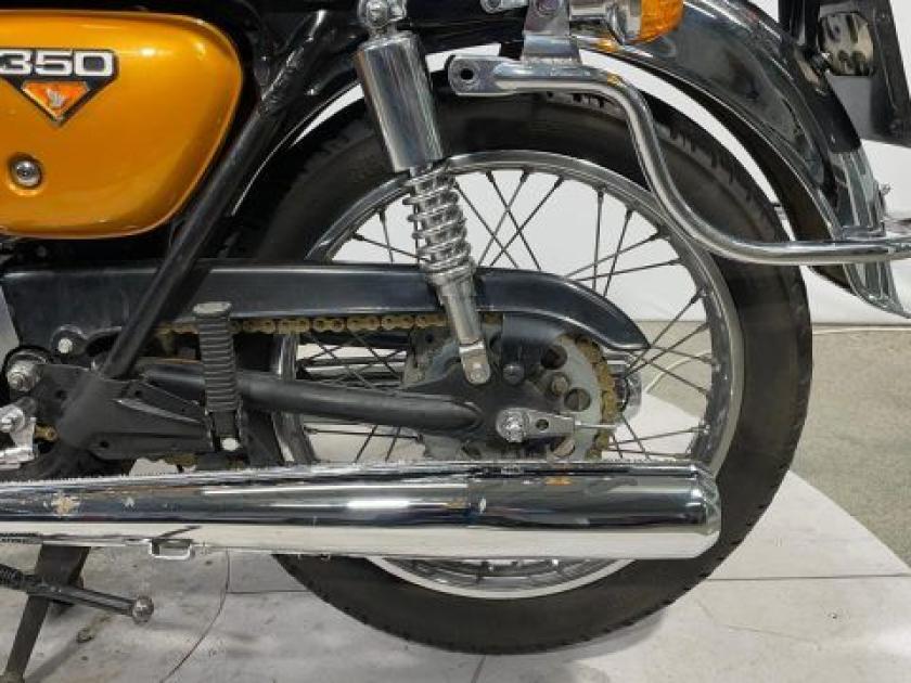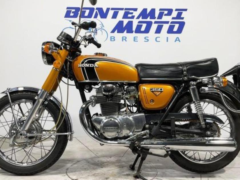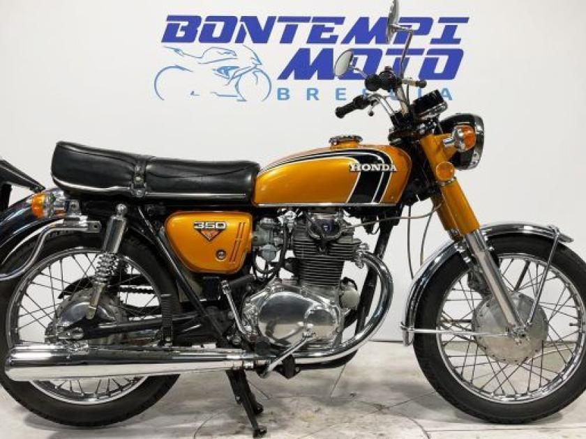 Motore: quattro cilindri in linea da 347 cc, raffreddato ad aria, 2 valvole per cilindro, distribuzione SOHC, alimentazione a 4 carburatori Keihin. Potenza: circa 34 CV (25 kW) a 10.000 giri/min. Coppia: circa 27 Nm a 9.500 giri/min. Trasmissione: cambio a 5 marce, trasmissione finale a catena. Telaio e ciclistica: telaio in acciaio tubolare a doppia culla; forcella anteriore telescopica non regolabile; doppi ammortizzatori posteriori regolabili nel precarico; cerchio anteriore da 19? con pneumatico 3.00-19 e cerchio posteriore da 18? con pneumatico 3.50-18; freno anteriore a disco singolo e freno posteriore a tamburo. Altezza sella: circa 790 mm. Peso: circa 170 kg a secco / circa 185 kg in ordine di marcia. Serbatoio: capacità circa 14 litri (? 3,7 USA gal). Stile: classica ?Four? anni ?70 con linea elegante e compatta, serbatoio bombato, quattro scarichi cromati separati, abbondanti finiture metalliche e dettagli curati; strumentazione analogica a doppio quadrante, sella lunga e confortevole per due persone. Carattere: progettata come media cilindrata raffinata e accessibile, ispirata alla CB750 Four ma più leggera e maneggevole; motore fluido e regolare, ciclistica equilibrata, guida piacevole e lineare. Ideale per chi desiderava la qualità e la tecnica Honda in una moto elegante, versatile e ricca di fascino meccanico.