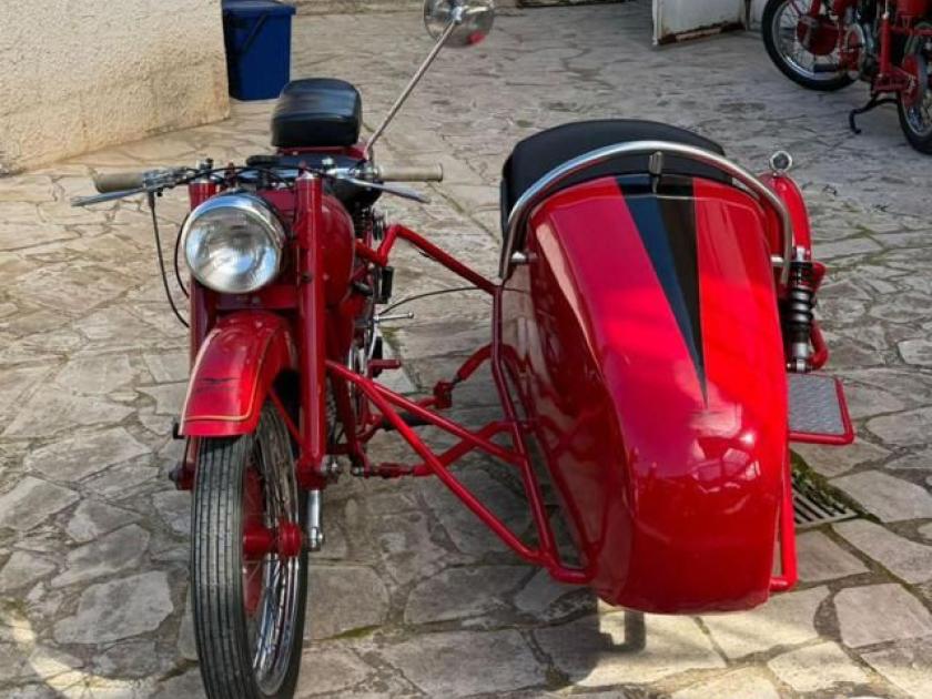 Con l?aggiunta del sidecar, l?Airone diventa un mezzo pratico, capace di trasportare un passeggero o piccoli carichi. Il motore monocilindrico quattro tempi garantisce una marcia regolare e sufficiente potenza per muovere l?insieme moto?carrozzino, anche se a velocità moderate.