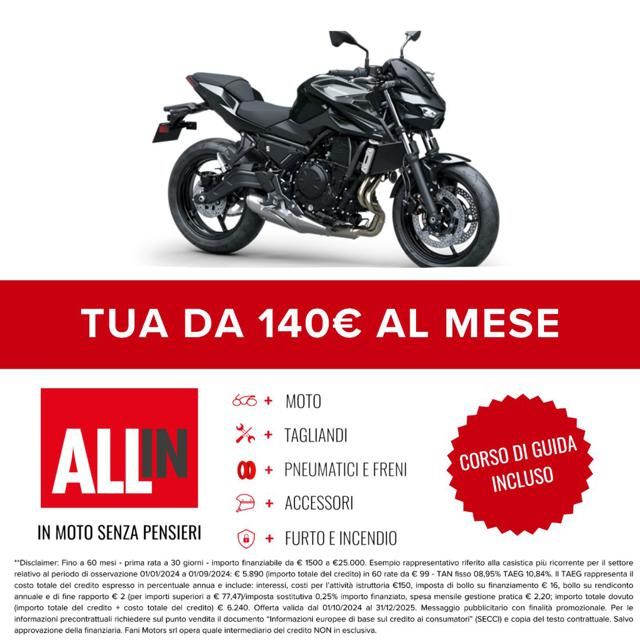 Non perdere questa occasione, con soli 100? ti diamo la possibilità di prenotare la nuovissima z650s, così che sarai tra i primi in Italia ad averla. Ma sai la cosa migliore? Se quando arriva non ti piace o ci avrai ripensato, sarai rimborsato integralmente.