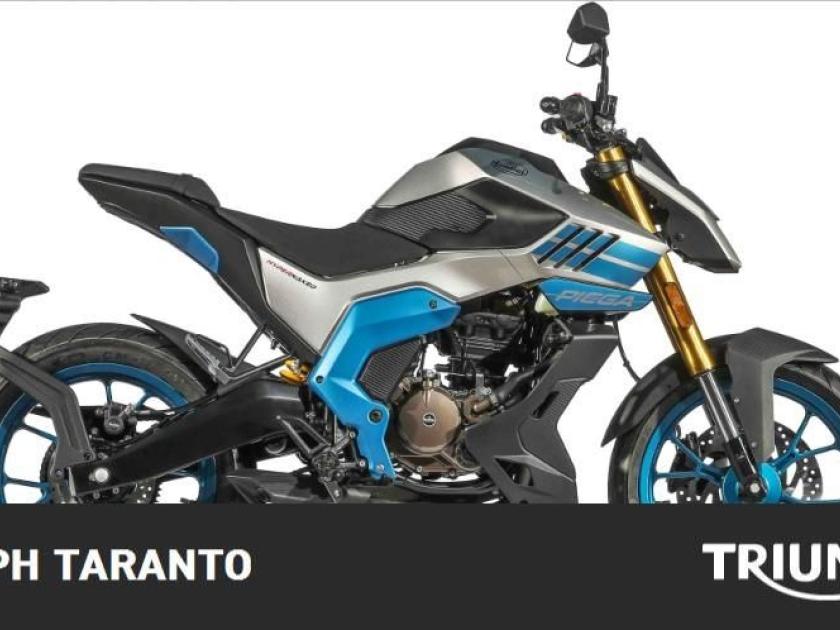 VIVI LA TUA NUOVA AVVENTURA Dal cuore pulsante del motore bialbero 125cc con alimentazione Dell'Orto, PIEGA 125 promette performance senza rivali. SCHEDA TECNICA Motore: Monocilindrico, 4 tempi, DOHC, 4 valvole Cilindrata: 124 cc Colore: color grafite Potenza Massima: 10,5 kW at 9750 rmp Coppia Massima: 10,5 Nm at 8000 rpm Trasmissione: 6 Velocità Serbatoio: 9,5 L Altezza posizione seduta: 820 mm Massa in ordine di marcia: 133 Kg Pneumatico anteriore: 110/70-17" Pneumatico posteriore: 140/70-17"