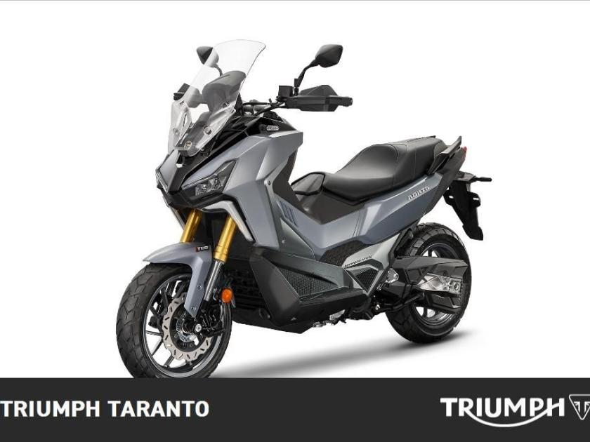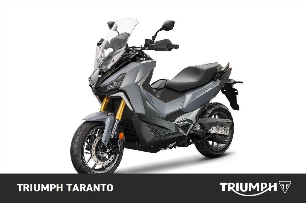 Con l'ADX TG 400 E5+, si definisce un nuovo standard nel settore degli scooter crossover. Caratterizzato da un design forte e da un'anima da esploratore, questo veicolo è ideale per la mobilità urbana e per le avventure extraurbane. La sua struttura rinforzata e le sospensioni a lunga escursione gli consentono di superare senza problemi sia il traffico quotidiano che i tracciati off-road. Caratteristica Tipo di motore: Monocilindrico 4 tempi, raffreddato a liquido Cilindrata 399 cm3 Alesaggio x corsa: f 83× 73.8 mm Potenza max: 25.7 kW / 7.000 rpm Coppia max: 37.2 Nm / 5.500 rpm Sospensioni anteriori: Forcella a steli rovesciati Sospensioni posteriori: Mono ammortizzatore multi-link Freno anteriore: Disco Ø 260 mm + ABS Freno posteriore: Disco Ø 240 mm + ABS Pneumatico anteriore: Tubeless 120 / 70-15 Pneumatico posteriore: Tubeless 150 / 70-14 Serbatoio 13 L Lunghezza: 2.166 mm Larghezza: 920 mm Altezza: 1.460 mm Altezza sella: 790 mm Interasse: 1.535 mm **NB: I costi relativi all'immatricolazione e all'eventuale spedizione sono da calcolarsi a parte. Disponibile da subito! Promozione valida dal 01 agosto al 30 settembre 2025. Valore promozione €300 INFORMAZIONI AGGIUNTIVE: Avviamento Elettrico, Paramotore
