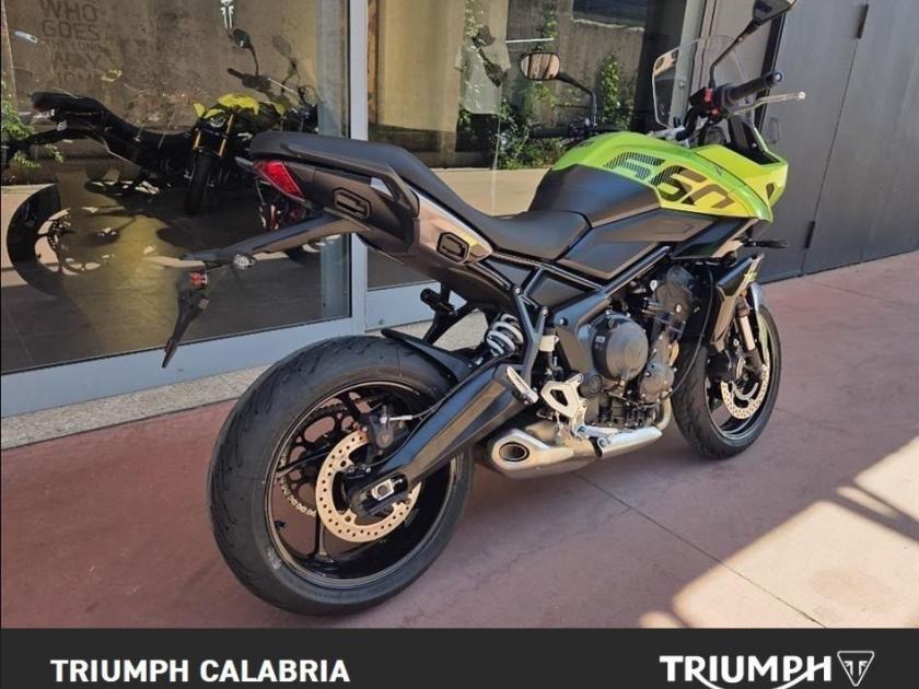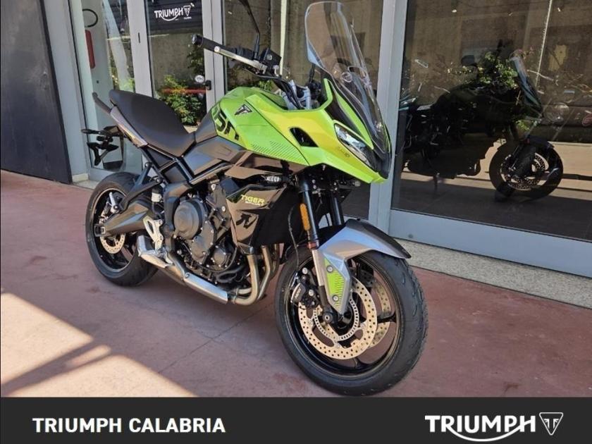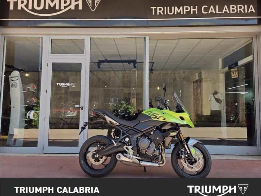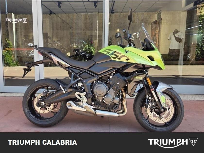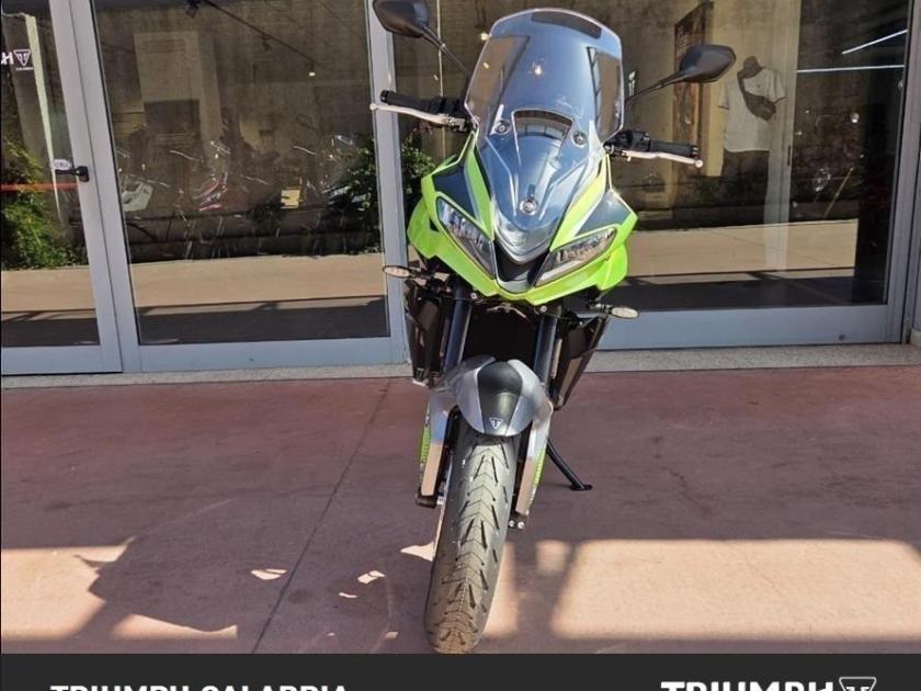 NUOVA TIGER SPORT 660 Colore roulette Green Pronta consegna Finanziamenti a Tassi agevolati Possibilità di consegna in tutta Italia Si Valutano Permute *BORSE LATERALI IN OMAGGIO* Motore e Trasmissione Motore Raffreddato a liquido, 12 valvole, doppio albero a camme in testa, 3 cilindri in linea Cilindrata 660 cc Alesaggio 74.0 mm Corsa 51.1 mm Rapporto di compressione 11.95:1 Potenza Massima (CE) 81 PS / 81 bhp (59.6 kW) @ 10,250 rpm Coppia Massima 64 Nm @ 6,250 rpm Sistema di iniezione Iniezione elettronica sequenziale multipoint con SAI con controllo elettronico dell'acceleratore. 3 modalità di guida (Rain, Road e Sport) Scarico Impianto di scarico 3 in 1 in acciaio inossidabile con silenziatore laterale Trasmissione finale Catena X-ring Frizione Frizione multidisco a bagno d'olio, assistita Cambio 6 rapporti Telaio Telaio perimetrale in acciaio tubolare Forcellone Bibraccio, in acciaio Ruota Anteriore Cerchio in alluminio a 5 raggi Tubeless 17 x 3,5" Ruota Posteriore Cerchio in alluminio a 5 raggi Tubeless 17 x 5,5" Pneumatico Anteriore 120/70 R 17 Pneumatico Posteriore 180/55 R 17 Sospensione Anteriore Showa 41mm upside down separate function cartridge forks, 150mm wheel travel Sospensione PosterioreShowa monoshock RSU, with remote hydraulic preload adjustment, 150mm wheel travel Freno Anteriore Doppio disco flottante da 310 mm, pinze radiali a 4 pistoncini, OCABS Cornering Freno Posteriore Disco singolo da 255 mm. Pinza scorrevole Brembo monopistoncino, OCABS Strumentazione e Funzioni Strumentazione multifunzione LCD con display TFT a colori integrato Dimensioni e Peso Larghezza Manubrio 834 mm Altezza Senza Specchietti 1398 mm / 1315 mm (posizione parabrezza alto / basso) mm Altezza Sella 835 mm Interasse 1418 mm Angolo di Inclinazione 23.1 º Avancorsa 97 mm Capacità Serbatoio 17.2 L Peso in ordine di marcia 207 kg Consumo di carburante 4.7 litres / 100 km (60.1 mpg) Emissioni CO2 **107 g/km Normativa EURO 5+. CO2 e consumo carburante sono misurati in conformità alla normativa 168/2013/CE. I valori del consumo di carburante sono stati ricavati in condizioni di prova specifiche e servono solo a scopo comparativo. Potrebbero non riflettere i risultati di guida effettivi. Intervallo di manutenzione 16.000 KM o 12 mesi, a seconda della condizione che si verifica prim DOPTAZIONI DI SERIE Cruise control (NOVITÀ) Quickshifter (NOVITÀ) ABS ottimizzato per il controllo in curva (NOVITÀ) e controllo trazione Illuminazione full-LED con luci di posizione (NOVITÀ) Parabrezza regolabile Modalità di guida: Sport (NOVITÀ), Road e Rain Strumentazione multifunzione con display TFT a colori Unità di connettività My Triumph (NOVITÀ)