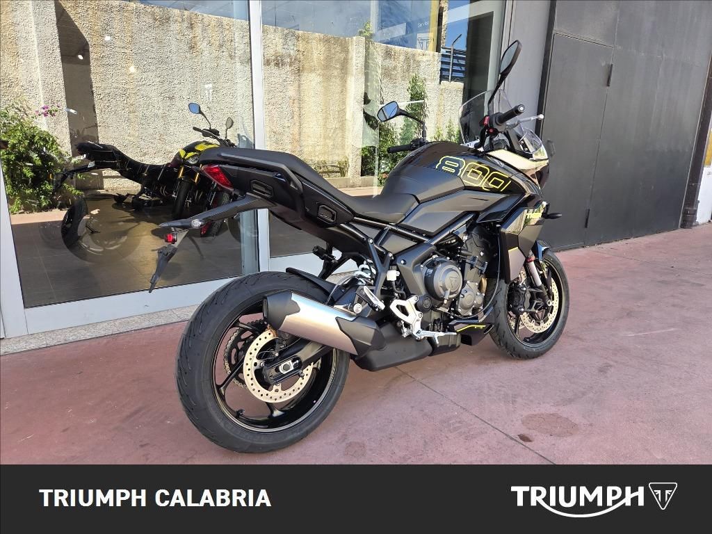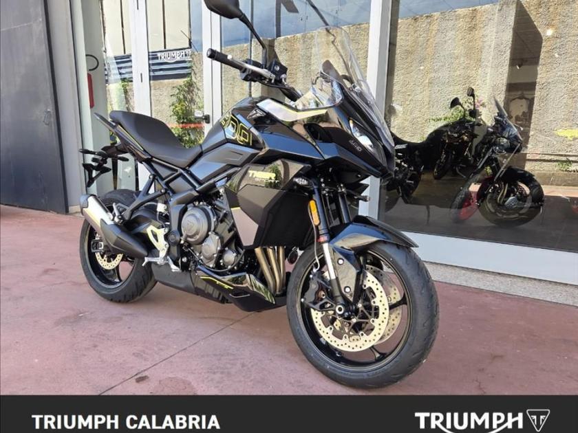 NUOVA TIGER SPORT 800 Colore Sapphire Black Pronta consegna Finanziamenti a Tassi agevolati Possibilità di consegna in tutta Italia Si Valutano Permute Motore e Trasmissione Motore Raffreddato a liquido, 12 valvole, doppio albero a camme in testa, 3 cilindri in linea Cilindrata 798 cc Alesaggio 78.0 mm Corsa 55.7 mm Rapporto di compressione 13.2:1 Potenza Massima (CE) 115 PS / 113 bhp (84.6 kW) @ 10,750 rpm Coppia Massima 84 Nm a 8,500 giri/min. Sistema di iniezione Iniezione elettronica sequenziale multipoint Bosch con SAI con controllo elettronico dell'acceleratore. 3 modalità di guida (Rain, Road e Sport) Scarico Impianto di scarico 3 in 1 in acciaio inossidabile con silenziatore laterale Trasmissione finale Catena X-ring Frizione Frizione multidisco a bagno d'olio, assistita Cambio 6 rapporti Telaio Telaio perimetrale in acciaio tubolare Forcellone Bibraccio, in acciaio Ruota Anteriore Cerchio in alluminio a 5 raggi Tubeless 17 x 3,5" Ruota Posteriore Cerchio in alluminio a 5 raggi Tubeless 17 x 5,5" Pneumatico Anteriore 120/70 R 17 Pneumatico Posteriore 180/55 R 17 Sospensione Anteriore Forcelle a cartuccia Showa 41mm, a steli rovesciati con funzioni separate, smorzamento in estensione e compressione regolabile, corsa ruota 150 mm Sospensione Posteriore Monoammortizzatore Showa con smorzamento in estensione regolabile e regolazione idraulica del precarico separata, corsa ruota 150 mm Freno Anteriore Doppio disco flottante da 310 mm, pinze radiali a 4 pistoncini, ABS Cornering Freno Posteriore Disco singolo da 255 mm. Pinza scorrevole Brembo monopistoncino, OCABS Strumentazione e Funzioni Strumentazione multifunzione LCD con display TFT a colori integrato Dimensioni e Peso Larghezza Manubrio 828 mm Altezza Senza Specchietti 1.386 mm / 1.303 mm (posizione parabrezza alto / basso) mm Altezza Sella 835 mm Interasse 1422 mm Angolo di Inclinazione 23.8 º Avancorsa 99 mm Capacità Serbatoio 18.6 L Peso in ordine di marcia 214 kg Consumo di carburante 4.7 litres / 100 km (60.1 mpg) Emissioni CO2 Normativa EURO 5+ Manutenzione Intervallo di manutenzione 16.000 KM o 12 mesi, a seconda della condizione che si verifica prima. Dotazioni di serie Frizione assistita antisaltellamento Modalità di guida Road, Rain e Sport ABS ottimizzato per il controllo in curva Traction Control disinseribile Quickshifter Cruise Control Deflettori Parabrezza regolabile Luci diurne (DRL) Gruppi ottici a LED Strumentazione TFT Connettività Bluetooth