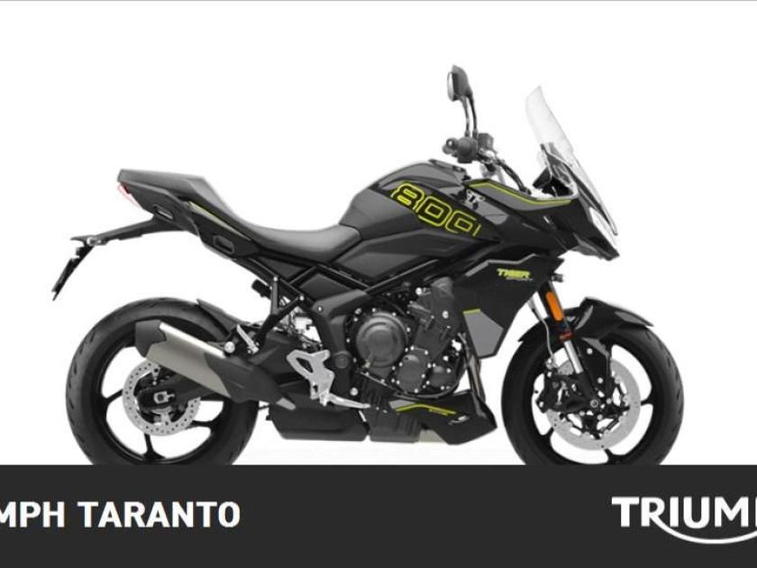 SPECIFICHE TECNICHE Motore e Trasmissione Feature Details Motore Raffreddato a liquido, 12 valvole, doppio albero a camme in testa, 3 cilindri in linea Cilindrata 798 cc Alesaggio 78.0 mm Corsa 55.7 mm Rapporto di compressione 13.2:1 Potenza Massima (CE) 115 PS / 113 bhp (84.6 kW) @ 10,750 rpm Coppia Massima 84 Nm a 8,500 giri/min. Sistema di iniezione Iniezione elettronica sequenziale multipoint Bosch con SAI con controllo elettronico dell'acceleratore. 3 modalità di guida (Rain, Road e Sport) Scarico Impianto di scarico 3 in 1 in acciaio inossidabile con silenziatore laterale Trasmissione finale Catena X-ring Frizione Frizione multidisco a bagno d'olio, assistita Cambio 6 rapporti Telaio Feature Details Telaio Telaio perimetrale in acciaio tubolare Forcellone Bibraccio, in acciaio Ruota Anteriore Cerchio in alluminio a 5 raggi Tubeless 17 x 3,5" Ruota Posteriore Cerchio in alluminio a 5 raggi Tubeless 17 x 5,5" Pneumatico Anteriore 120/70 R 17 Pneumatico Posteriore 180/55 R 17 Sospensione Anteriore Forcelle a cartuccia Showa 41mm, a steli rovesciati con funzioni separate, smorzamento in estensione e compressione regolabile, corsa ruota 150 mm Sospensione Posteriore Monoammortizzatore Showa con smorzamento in estensione regolabile e regolazione idraulica del precarico separata, corsa ruota 150 mm Freno Anteriore Doppio disco flottante da 310 mm, pinze radiali a 4 pistoncini, ABS Cornering Freno Posteriore Disco singolo da 255 mm. Pinza scorrevole Brembo monopistoncino, OCABS Strumentazione e Funzioni Strumentazione multifunzione LCD con display TFT a colori integrato Dimensioni e Peso Feature Details Larghezza Manubrio 828 mm Altezza Senza Specchietti 1.386 mm / 1.303 mm (posizione parabrezza alto / basso) mm Altezza Sella 835 mm Interasse 1422 mm Angolo di Inclinazione 23.8 º Avancorsa 99 mm Capacità Serbatoio 18.6 L Peso in ordine di marcia 214 kg Consumo di carburante Feature Details Consumo Carburante ** 4.7 litres / 100 km (60.1 mpg) Emissioni CO2 ** Normativa EURO 5+. CO2 e consumo carburante sono misurati in conformità alla normativa 168/2013/CE. I valori del consumo di carburante sono stati ricavati in condizioni di prova specifiche e servono solo a scopo comparativo. Potrebbero non riflettere i risultati di guida effettivi. Manutenzione Feature Details Intervallo di manutenzione 16.000 KM o 12 mesi, a seconda della condizione che si verifica prima. Dotazioni di serie Feature Details Frizione assistita antisaltellamento Modalità di guida Road, Rain e Sport ABS ottimizzato per il controllo in curva Traction Control disinseribile Quickshifter Cruise Control Deflettori Parabrezza regolabile Luci diurne (DRL) Gruppi ottici a LED Strumentazione TFT Connettività Bluetooth Dotazioni optional Feature Details Silenziatore slip-on Akrapovic Manopole riscaldabili Indicatori di direzione a LED Sistema di monitoraggio pressione pneumatici Presa di alimentazione ausiliaria Triumph Protect Plus Triumph Track Plus Accessori Feature Details Sella pilota ribassata Sella Comfort passeggero Paracoppa E molti altri *i costi di messa su strada e spedizione vengo calcolati separatamente INFORMAZIONI AGGIUNTIVE: Avviamento Elettrico, Marmitta Catalitica