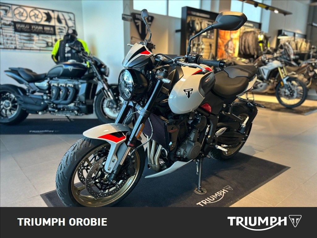 NUOVA TRIDENT 800. Nata per brillare, prestazioni tre cilindri e agilità imbattibile. Prezzo a partire da € 9.995,00. Motore con cilindrata 800 e 115CV (84 Nm di coppia). Sospensioni Showa regolabili, pinze radiali e dischi anteriori da 310 mm. LCD multi-funzione con tachimetro digitale, e 3 modalità di guida. ABS e Traction Control cornering, connettività Bluetooth, quickshifter e cruise control di serie. Ulteriori informazioni: Garanzia ufficiale Triumph di 24 mesi, con possibilità di estensione a 48 mesi, a pagamento, entro il primo anno. Soccorso Stradale e Traino opera in caso di Guasto del motoveicolo per 24 mesi a partire dalla data di prima immatricolazione. Disponiamo di finanziamenti Promozionali Triumph, salvo approvazione della finanziaria. Valutiamo il ritiro del vostro usato. ATTENZIONE: è bene ricordare, benchè sia stata posta la massima cura per garantire la precisione e la correttezza dei contenuti di questa presentazione al momento della pubblicazione, essa non ha alcun valore in sede contrattuale. INFORMAZIONI AGGIUNTIVE: Avviamento Elettrico
