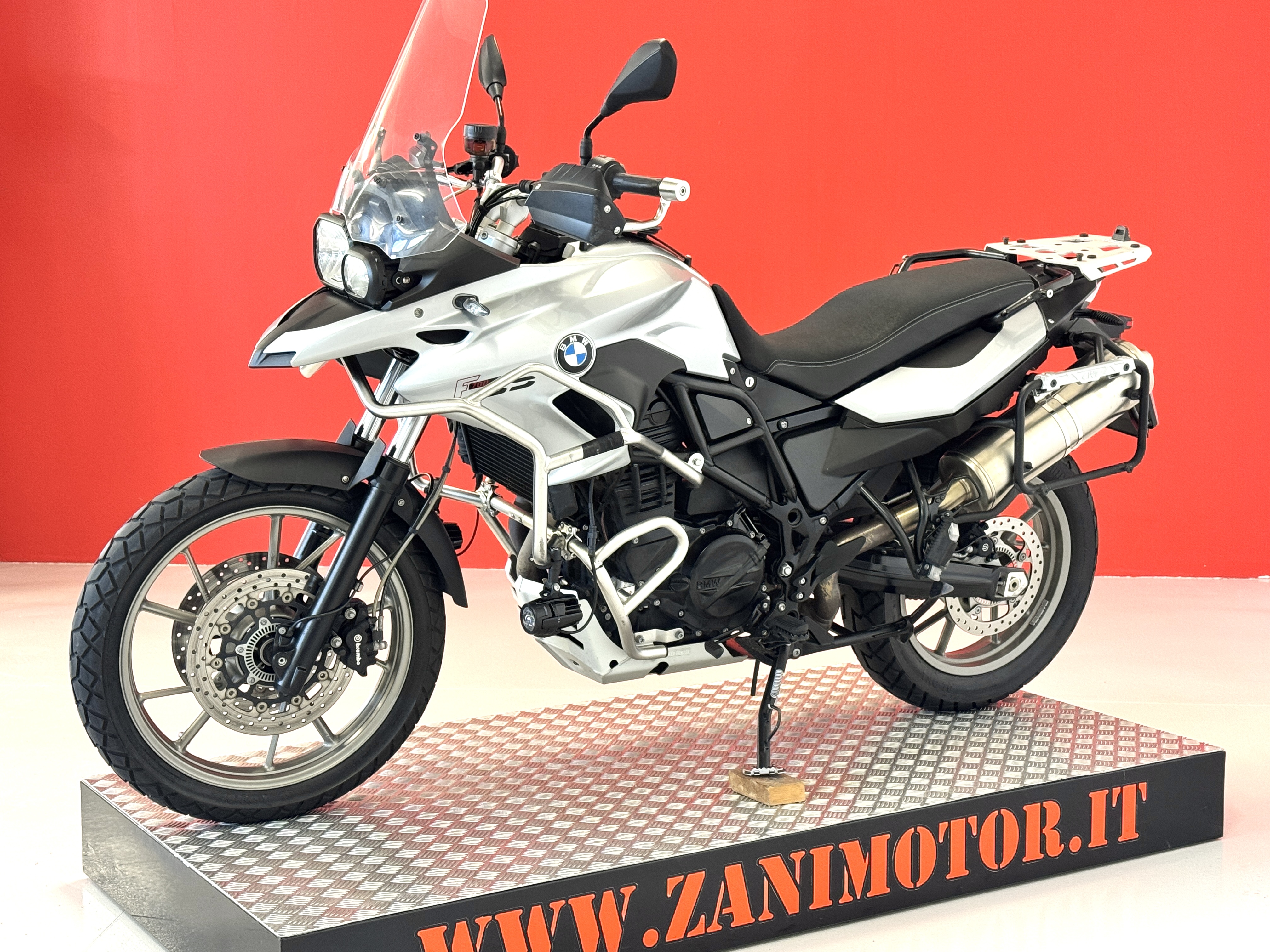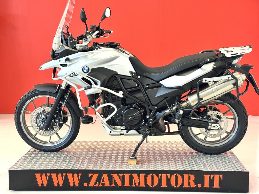 Motociclo BMW F 700 GS, anno 2014, km.61300, pronta all'uso. Accessori: computer di bordo, manopole riscaldabili, paramani, paramotore alto e basso, attacchi valigie Givi, faretti di profondità, cavalletto centrale, parabrezza maggiorato.