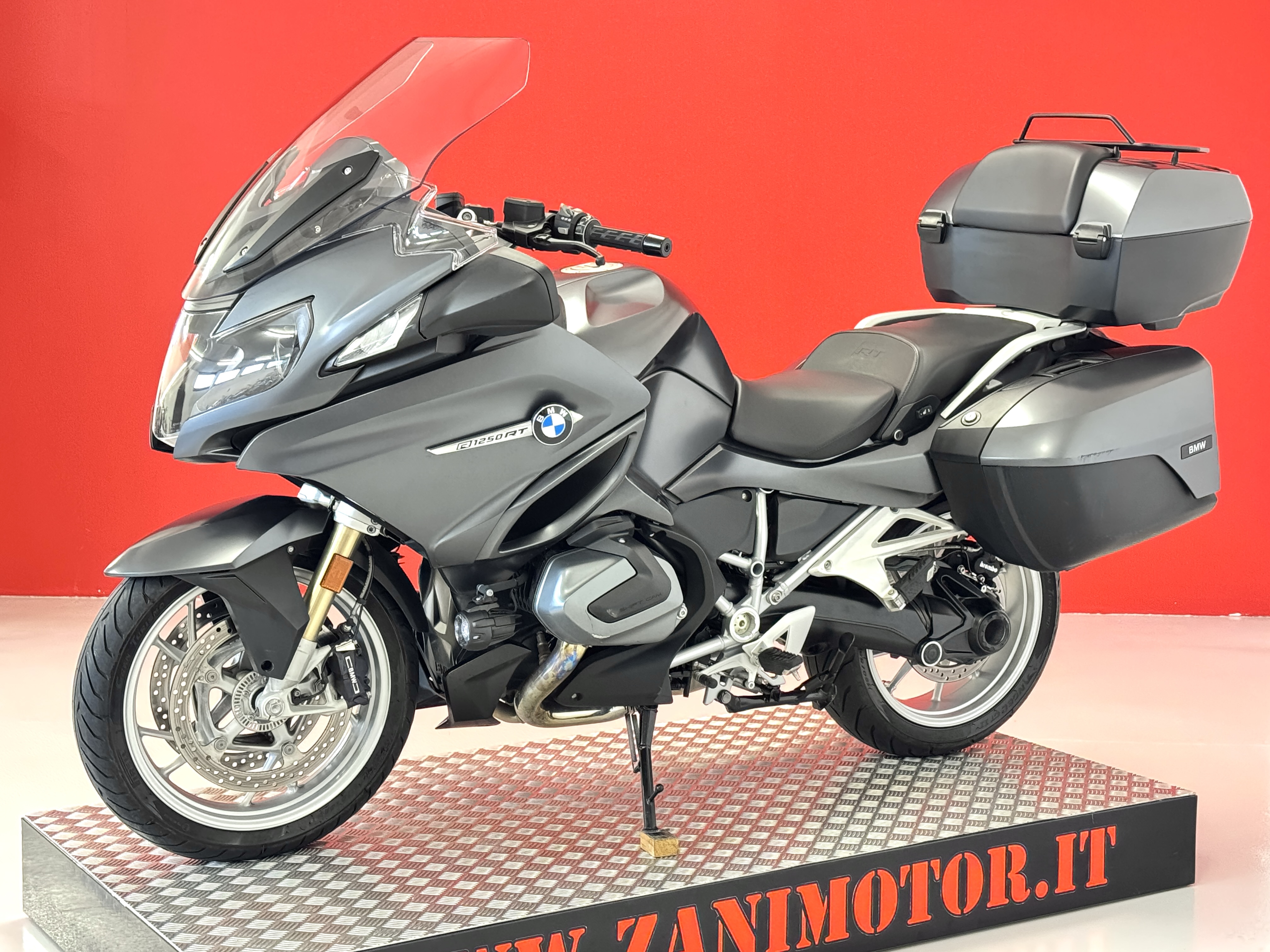 Motociclo BMW R 1250 RT EXCLUSIVE LIMITED EDITION "MINERAL GREY METALLIC", anno 2020 con soli 32500 km, edizione speciale "mineral grey metallic" prodotta in serie limitata (solo 1500 unità, di cui 500 erano destinate al mercato francese). Il prezzo di questa edizione limitata superava di 6570 euro il prezzo di listino dell'epoca proprio per la colorazione speciale e per il suo allestimento full full optional con pacchetto comfort, pacchetto touring, pacchetto dynamic, tris valigie originali, faretti di profondità, radio. Tagliandi certificati Bmw.