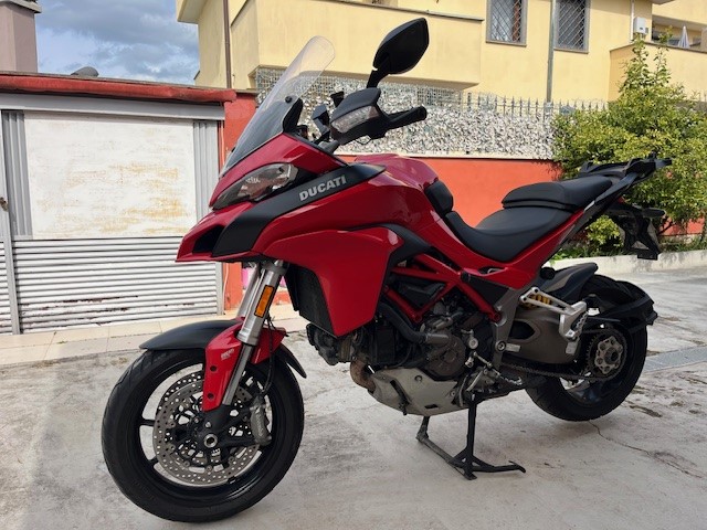 Vendo Ducati Multistrada 1200, del 2016, colore rosso, con SOLI 16.550 km, praticamente PERFETTA, bollo pagato fino a gennaio 2027. Moto impeccabile, tagliandata Ducati. Completa del touring pack, ovvero di bauletto e valigie laterali ORIGINALI Ducati in tinta, cavalletto centrale, manopole riscaldabili e chiave Key less. Prezzo leggermente trattabile, no perditempo.