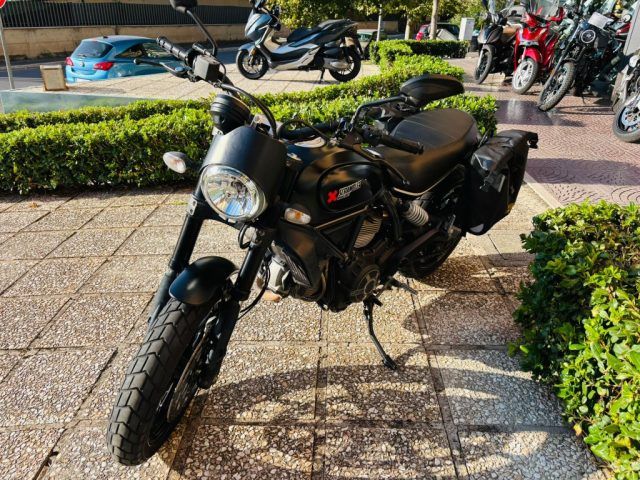 DUCATI SCRAMBLER 800 ACCESSORIATA CON BORSE LATERALI DUCATI, CUPOLINO, MANUBRIO BASSO.