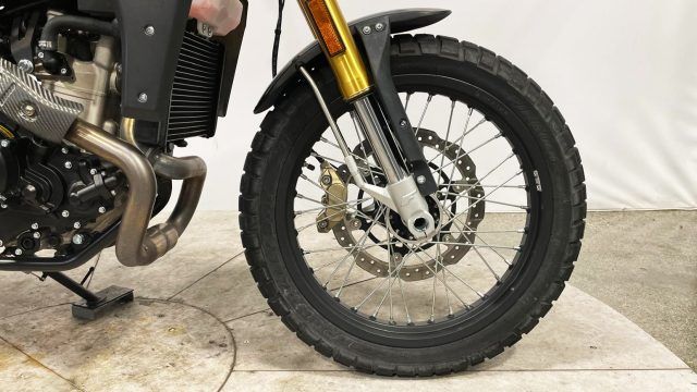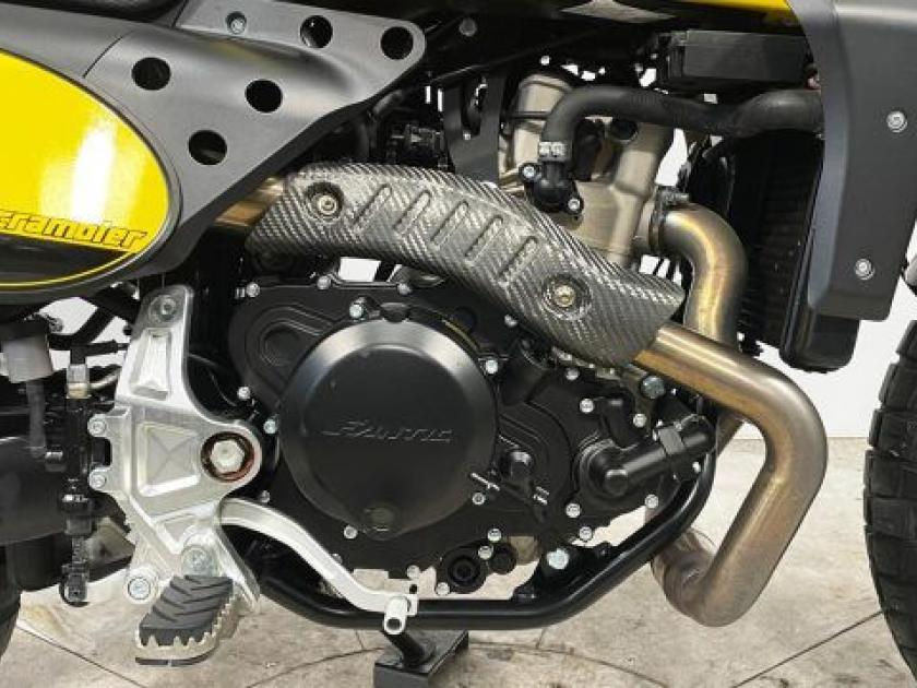 Motore: monocilindrico 4 tempi, raffreddato a liquido, distribuzione a doppio albero a camme (DOHC) con 4 valvole per cilindro, alimentazione a iniezione elettronica Ride by Wire. Potenza: circa 40?CV a 7.500?giri/min. Coppia: circa 40?Nm a 6.000?giri/min. Trasmissione: cambio a 6 marce, frizione multidisco in bagno d?olio, trasmissione finale a catena. Telaio e ciclistica: telaio a traliccio in acciaio; forcella anteriore rovesciata Ø?41?mm con escursione circa 150?mm; monoammortizzatore posteriore regolabile nel precarico, escursione circa 150?mm; cerchi a raggi con ruota anteriore 19? e posteriore 17?, pneumatici 110/80?19 anteriore e 140/80?17 posteriore; freni: disco flottante anteriore Ø?320?mm, disco posteriore Ø?230?mm, ABS a due canali disinseribile. Altezza sella: circa 820?mm. Peso: circa 150?kg a secco. Serbatoio: capacità circa 12?litri. Stile: scrambler moderno con richiamo ?heritage? anni ?70: serbatoio compatto, fanale anteriore tondo full?LED, manubrio largo, estetica semplice ma distintiva, ruota anteriore da 19? per leggerezza e agilità anche su strade sterrate. Carattere: moto versatile e leggera, adatta a città e strade secondarie, con qualche capacità leggera fuoristrada. Motore fluido ma con carattere, ciclistica agile e divertente; ideale per chi cerca una scrambler dallo stile retrò ma con tecnologie moderne.La motocicletta viene consegnata con TAGLIANDO e REVISIONE in ordine, GARANZIA DI 12 MESI con DICHIARAZIONE DI CONFORMITA' a norma di legge.