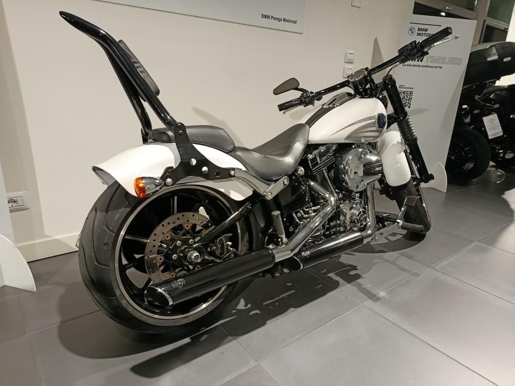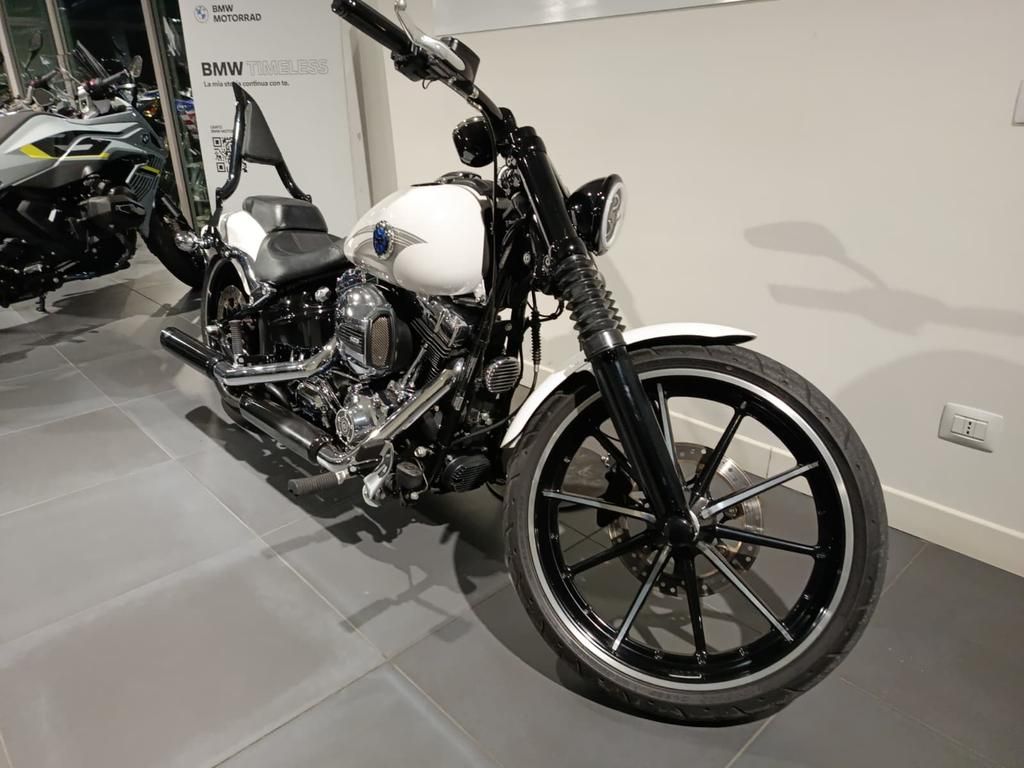 Strepitosa Harley Breackout , splendida in bianco metalflake, Borsa laterale, faro led, scarico speciale, portatarga special, schienale + altri extra. Parti originali disponibili. 12 mesi di garanzia , si valutano permute.
