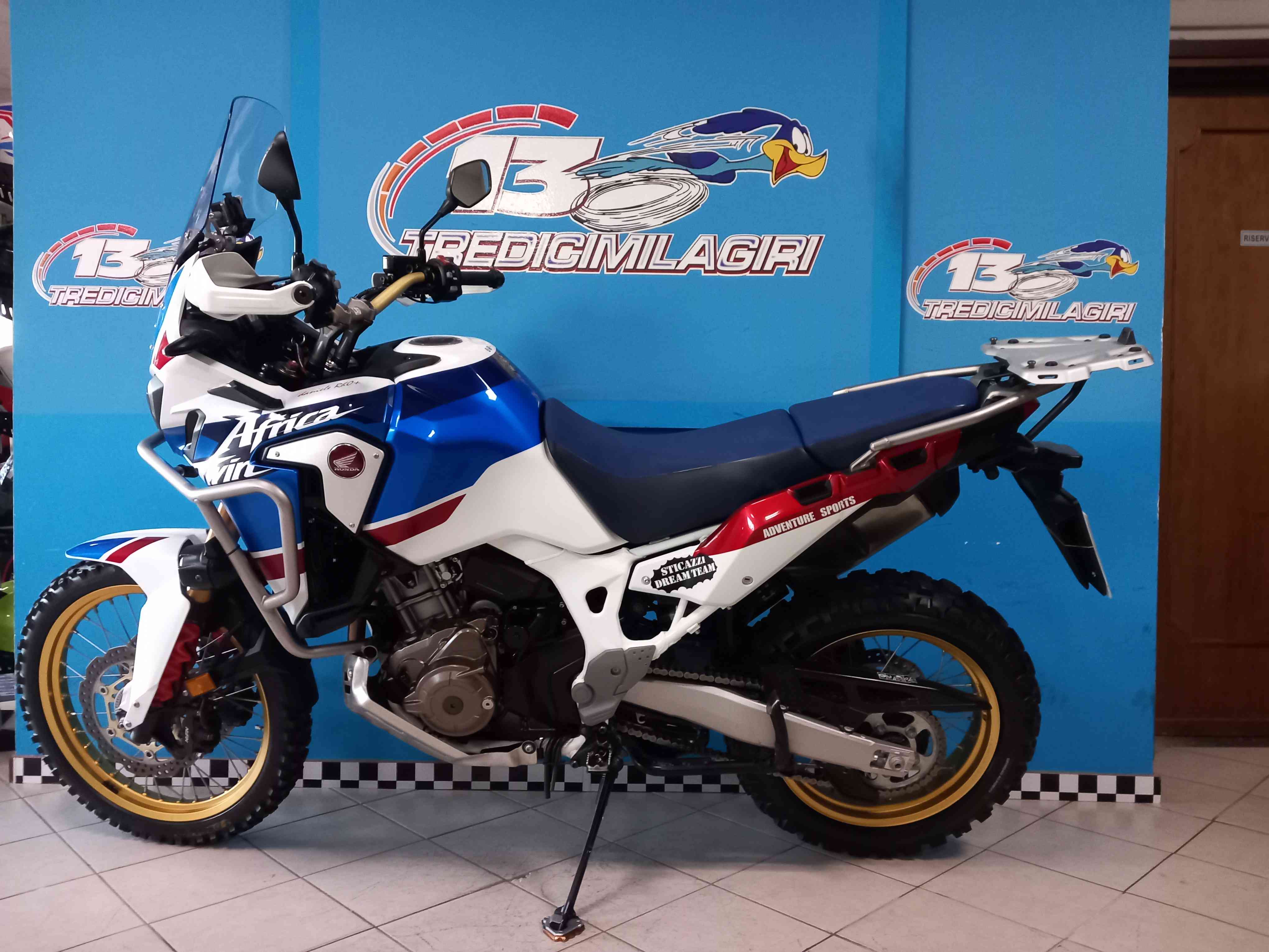 Accessori/note: BELLISSIMA ED UNICOPROPRIETARIO HONDA AFRICA TWIN 1000. SOLO 36000KM ALL'ATTIVO CON TAGLIANDI CERTIFICATI. VERSIONE ADVENTURE SPORTS TRENTESIMO ANNIVERSARIO. FULL OPTIONAL. COMPLETAMENTE ORIGINALE. CORREDATA DI: BARRE PARAMOTORE, PARACOPPA MAGGIORATO, PARAMANI, ALETTE FRANGIVENTO CARENE, CUPOLINO REGOLABILE, TRAVERSA CON KIT PREDISPOSIZIONE NAVIGATORE. LA MOTO DISPONE ANCHE DI TRENO GOMME TASSELLATE DUNLOP SU CERCHI RESI TUBLESS CERTIFICATI DALLA DITTA BARTUBLESS ATTUALMENTE MONTATE E TRENO GOMME AL 70% DUNLOP INCLUSE, REVISIONE COMPLETA DELLE FORCELLE CON I RELATIVI PARAOLI, KIT TRASMISSIONE NUOVO.