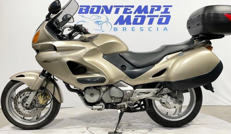 BUONE CONDIZIONI COMPLETAMENTE ORIGINALE Motore: bicilindrico a V di 52° da 647 cc, raffreddato a liquido, 3 valvole per cilindro (2 aspirazione, 1 scarico), distribuzione SOHC (un albero a camme in testa), alimentazione a carburatori Keihin Ø 36 mm. Potenza: circa 56 CV (41 kW) a 7.750 giri/min. Coppia: circa 60 Nm a 6.000 giri/min. Trasmissione: cambio a 5 marce, trasmissione finale ad albero cardanico.Telaio e ciclistica: telaio in acciaio a doppia culla, forcella anteriore telescopica Ø 41 mm (escursione 120 mm, non regolabile), monoammortizzatore posteriore Pro-Link regolabile nel precarico (escursione 120 mm); cerchio anteriore da 18 con pneumatico 120/70-ZR18, cerchio posteriore da 17 con pneumatico 150/70-ZR17; impianto frenante con doppio disco anteriore Ø 296 mm (pinze a due pistoncini) e disco posteriore Ø 276 mm (pinza singolo pistoncino); ABS non disponibile su questa versione (introdotto solo successivamente).Altezza sella: circa 805 mm. Peso: circa 236 kg in ordine di marcia. Serbatoio: capacità circa 19 litri ( 5,0 US gal).Stile: tourer carenata di media cilindrata con carenatura integrale e borse laterali integrate di serie, impostazione ergonomica confortevole e protezione aerodinamica di alto livello; design sobrio e funzionale, tipicamente Honda. Carattere: moto solida, affidabile e molto equilibrata, pensata per i lunghi viaggi e luso quotidiano. Il motore V-twin garantisce elasticità e regolarità di marcia, mentre la trasmissione ad albero riduce al minimo la manutenzione. Ideale per il turismo a medio raggio, il commuting e per chi cerca una compagna di viaggio comoda, economica e durevole. La motocicletta viene consegnata con TAGLIANDO e REVISIONE in ordine, GARANZIA DI 12 MESI con DICHIARAZIONE DI CONFORMITA' a norma di legge. VALUTIAMO IL RITIRO IN PERMUTA DI MOTO / SCOOTER / AUTO BONTEMPI MOTO -SHOW ROOM con 200 OCCASIONI SELEZIONATE e GARANTITE- -ACQUISTIAMO MOTO E SCOOTER CON PAGAMENTO IMMEDIATO- I NOSTRI SERVIZI : - Garanzia di 12 mesi - Finanziamenti personalizzati fino a 84 rate - Consegna in tutta Italia - Permuta tra auto e moto - Contovendita gratuito del vostro usato - Servizio interno di assistenza e officina Venite a trovarci a: - Concesio (Bs) - SHOW ROOM CON 200 OCCASIONI Via della Stella, 114 - 25062 Ufficio Vendite: 030/2753052 Contatto diretto: 366/1176000 - 328/3266657 - Brescia Città - STORE FANTIC - VOGE - GREEN MOBILITY BRESCIA Viale della Bornata, 38 - 25100 Ufficio vendite: 030/5282814 Cellulare: 389/4772706 I NOSTRI ORARI: 9.00 - 12.30 / 14.30 - 19.00 - Lunedì mattina chiuso - Domenica chiuso www.bontempimoto.it - info@bontempimoto.it facebook.com/bontempimoto.it - instagram ATTENZIONE: per correttezza si fa presente che involontariamente possono esserci errori di corrige (Accessori, colore, dati tecnici,ecc.), nel dubbio chiedere conferma.