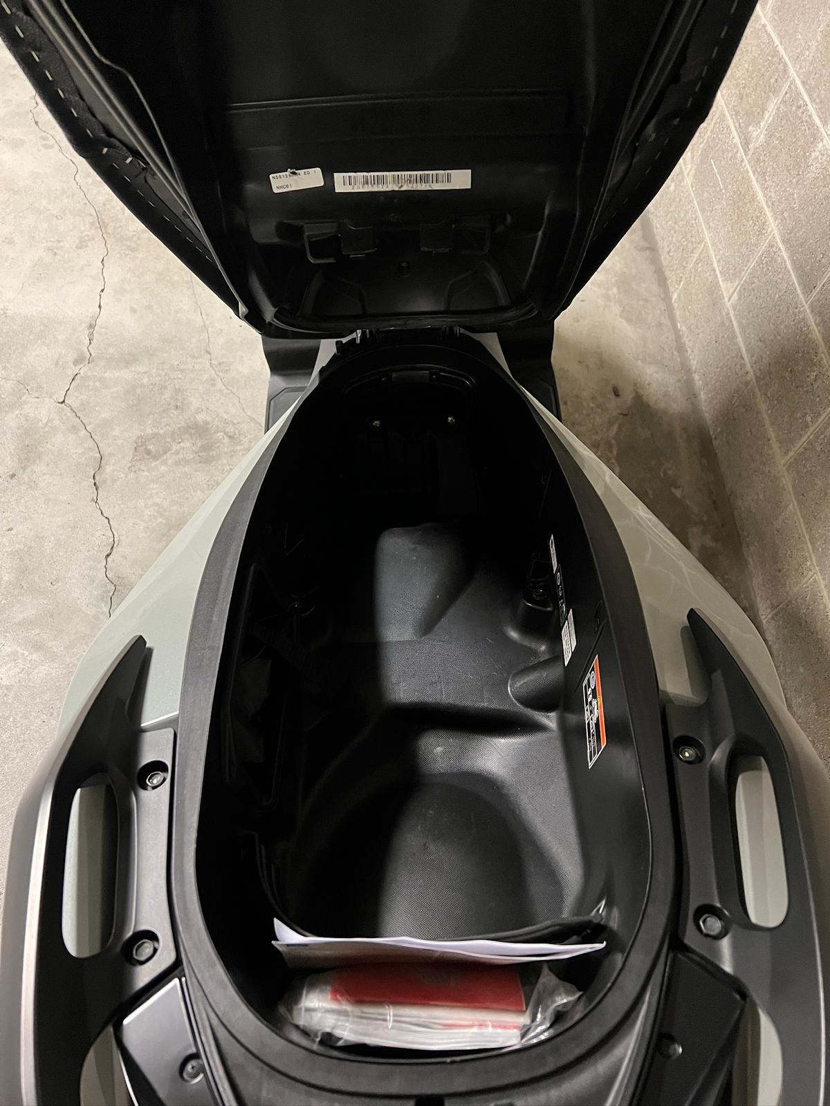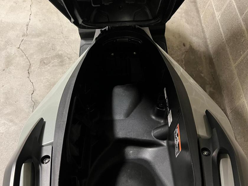 Presenta un ampio vano sottosella (si possono riporre comodamente due caschi integrali e avanza ancora un piccolo spazio).