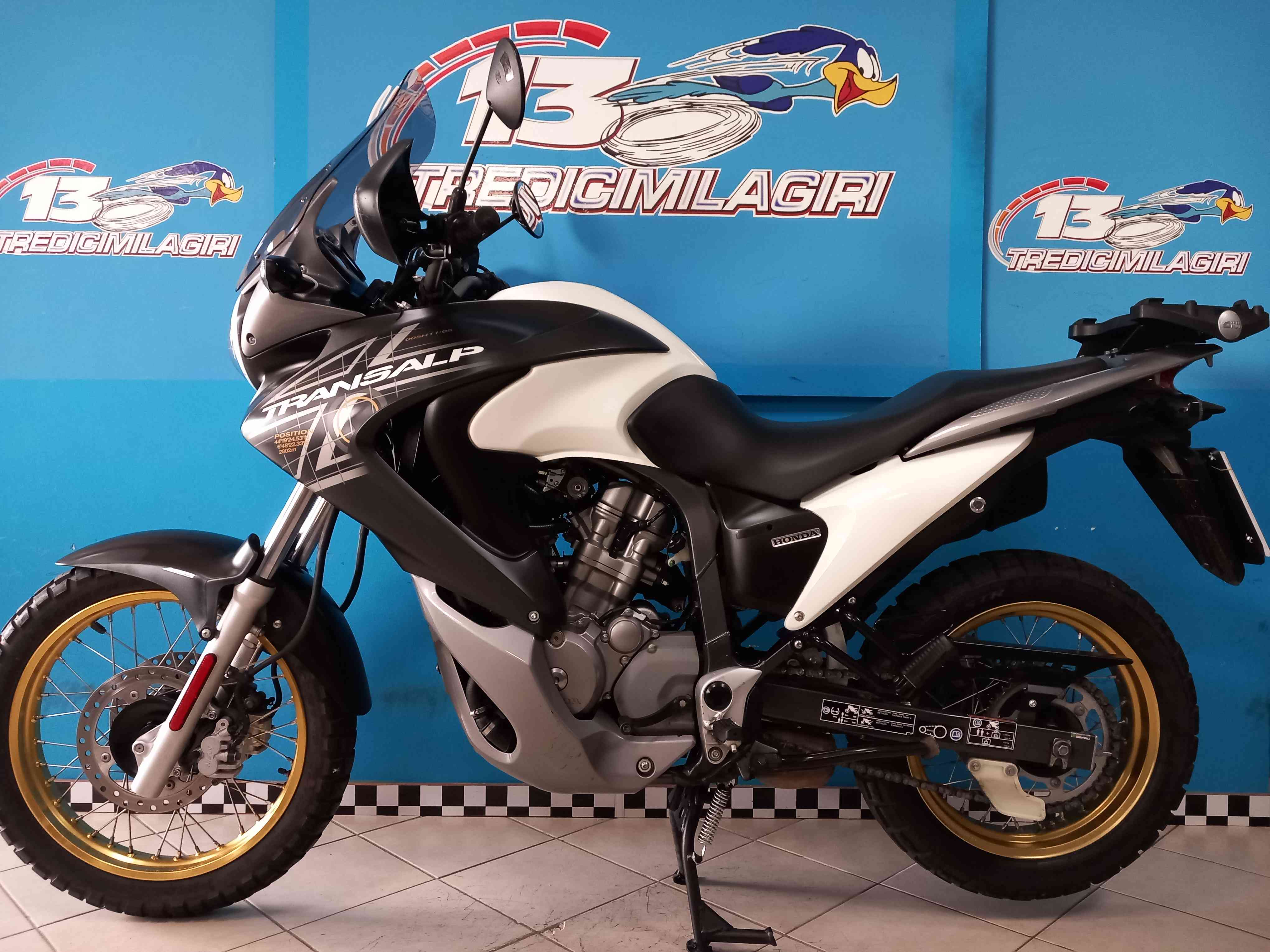 Accessori/note: BELLISSIMA TRANSALP 700. ANNO 2011. EURO 3. VERSIONE BICOLOR. SOLO 23000KM ALL'ATTIVO CON UN TOTALE DI DUE PROPRIETARI EFFETTIVI. IL VEICOLO E' COMPLETAMENTE ORIGINALE. CORREDATO DI ILLUMINAZIONE FULL LED PER LA FANALERIA PRINCIPALE, CUPOLINO TAGLIO MEDIO FUME', PORTE USB, PARAMANI,CAVALLETTO LATERALE E CAVALLETTO CENTRALE, PARACATENA IN METALLO DEDICATO,KIT TRASMISSIONE PARI AL NUOVO,PORTAPACCHI DEDICATO GIA' MUNITO DI PIASTRA GIVI COMPATIBILE CON LA MAGGIORANZA DEI BAULETTI DISPONIBILI SUL MERCATO.