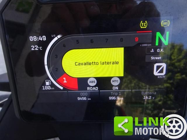 Tech pack completo (mappe street, rain, off road, rally), cambio quick shift, cornering abs, sella originale in dotazione (presente sella bassa), piastra bauletto Givi.