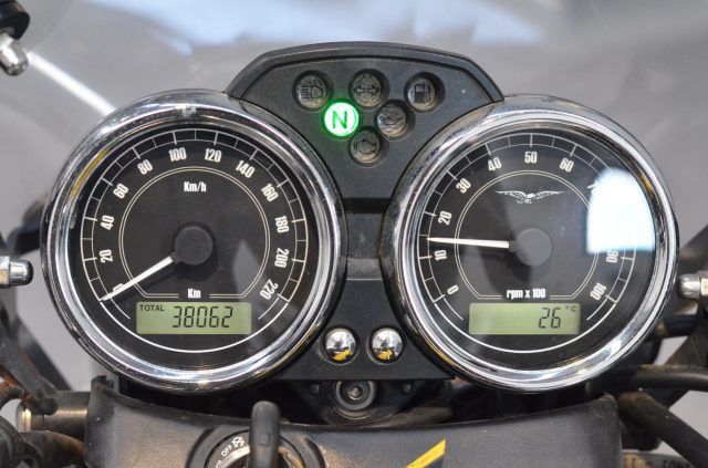 Motore: bicilindrico a V?90° da 744?cc, raffreddato ad aria, 2?valvole per cilindro, alimentazione a iniezione elettronica. Potenza: circa 51?CV a 6.200?giri/min. Coppia: circa 58?60?Nm a 5.000?giri/min. Trasmissione: cambio meccanico a 5 marce, trasmissione finale ad albero (shaft drive). Telaio e ciclistica: telaio a doppia culla tubolare in acciaio; forcella anteriore telescopica Ø circa 40?mm con escursione circa 130?mm; sospensione posteriore con forcellone oscillante in lega leggera + doppio ammortizzatore regolabile nel precarico, escursione circa 118?mm; cerchi: anteriore da 18? con pneumatico 100/90?18, posteriore da 17? con pneumatico 130/80?17; freno anteriore a disco Ø?320?mm con pinza 4 pistoncini, freno posteriore a disco Ø?260?mm con pinza 2 pistoncini. Altezza sella: circa 805?mm (versione standard; opzione sella bassa ??785?mm). Peso: circa 179?kg in ordine di marcia. Serbatoio: capacità circa 22?litri (riserva circa 4 litri). Stile: moto dallo stile ?classic vintage?, richiamo anni ?60??70, ruote a raggi, verniciature bicolore esclusive per la versione Special, finiture curate. Carattere: pensata per chi cerca una moto dallo spirito retrò ma con cilindrata e motore abbastanza generosi; adatta all?uso quotidiano e alle uscite rilassate, con buona coppia e guida non eccessivamente sportiva; meno indicata per chi vuole prestazioni da supersport o turismo ?hard? con valigie e bagagli integrati.Se vuoi, posso preparare anche una scheda ?punti da controllare su usato? per questa V7 Special 2012 (usura sospensioni, condizioni albero cardanico, ricambi, ecc). La motocicletta viene consegnata con TAGLIANDO e REVISIONE in ordine, GARANZIA DI 12 MESI con DICHIARAZIONE DI CONFORMITA' a norma di legge.