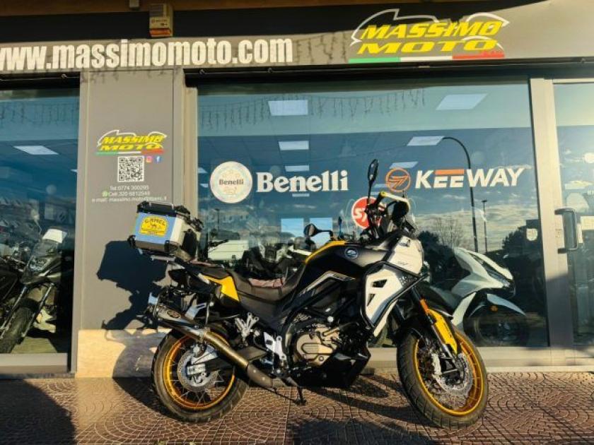 QJ MOTORS SVT 650X, COMPLETAMENTE ORIGINALE, ALLESTIMENTO TOP CON CERCHI A RAGGI ORO, SELLA ERGONOMICA RISCALDATA, SCARICO, TANSISSIMI OPTIONAL, BAULE POSTERIORE.