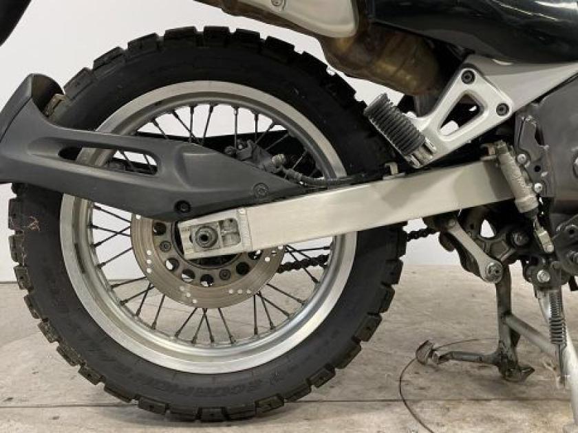 Motore: monocilindrico da circa 644?cc, raffreddato ad aria/olio, 4?valvole per cilindro, distribuzione SOHC, alimentazione a carburatore (2?×?Mikuni?Ø?32?mm). Potenza: circa 48?CV (??35?kW) a ~7.000?giri/min. Coppia: circa 52?Nm a ~5.500?giri/min. Trasmissione: cambio meccanico a 5 marce, trasmissione finale a catena. Telaio e ciclistica: telaio a doppia culla in acciaio; forcella anteriore telescopica, escursione circa 170?mm; sospensione posteriore monoammortizzatore con leveraggio ?Full?Floater?, escursione circa 167?mm; ruota anteriore da 19? con pneumatico 100/90?19, ruota posteriore da 17? con pneumatico 130/80?17; freno anteriore a disco Ø?300?mm, freno posteriore a disco Ø?240?mm. Altezza sella: circa 830?mm. Peso a secco: circa 162?kg (peso in ordine di marcia leggermente superiore). Serbatoio: capacità circa 18,5?litri. Stile: moto in stile ?adventure/dual?purpose? leggera, con ruote di taglia mista (19? davanti) che la rende adatta anche a tratti sterrati leggeri; carenatura minima ma parabrezza protettivo; posizione di guida eretta. Carattere: pensata per chi cerca una moto versatile, semplice e robusta, adatta sia a percorsi urbani che a escursioni leggeri su strade meno battute; motore monocilindrico tranquillo e facile da gestire, ciclistica sufficientemente stabile; meno indicata per prestazioni elevate o guida su tracciati fuoristrada impegnativi.