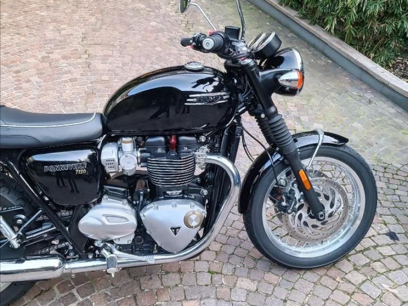 TRIUMPH BONNEVILLE T120 , colore Jet Black, Top di gamma delle modern classic di casa Triumph. Moto con 9492km. Moto in condizioni ECCELLENTI. Monta manopole riscaldate e cavalletto centrale. Pneumatici 80%. Storico sevice ufficiale. Visionabile presso Triumph Milano in via Eugenio Brizi, 4. Per maggiori informazioni 02 9974 8923.
