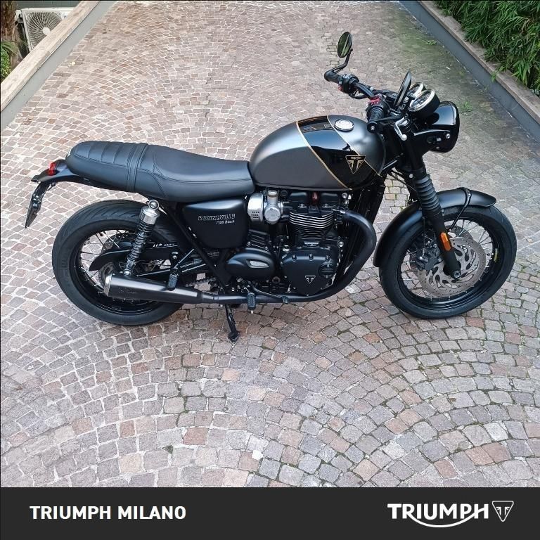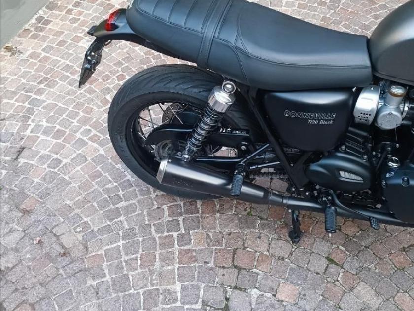 TRIUMPH BONNEVILLE T120 BLACK, colore Nero, Top di gamma delle modern classic di casa Triumph. Moto con 38400km. Moto in condizioni ECCELLENTI. Monta parafango posteriore corto in vetroresina con stop integrato, portatarga corto in alluminio, frecce ant e post in alluminio nero a led, manopole riscaldate, cavalletto centrale, specchietti bar-end, manopole riscaldate, terminali LeoVince neri omologati, oltre a painting serbatoio in doppia finitura grigio goffrato e nero lucido con filetto oro a congiungere. Tagliando appena effettuato. Storico sevice ufficiale. Visionabile presso Triumph Milano in via Eugenio Brizi, 4. Per maggiori informazioni 02 9974 8923.