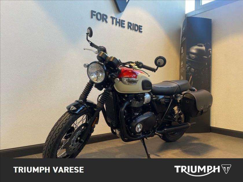 Triumph Bonneville T100 Black serbatoio bicolore in ottime condizioni - tagliandata pre consegna - garanzia di un anno. Moto finanziabile in comode rate - si valuta permuta d'usato. Accessori: freccette Led tonde - specchietti bar end - borsa laterale in pelle (tutti accessori originali Triumph). Possibilità di spedizione in tutta Italia. INFORMAZIONI AGGIUNTIVE: Avviamento Elettrico