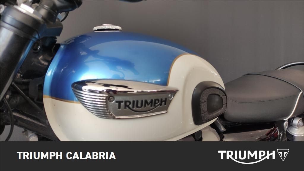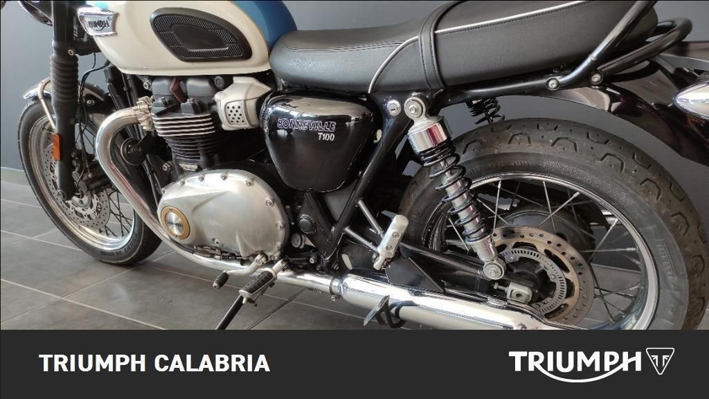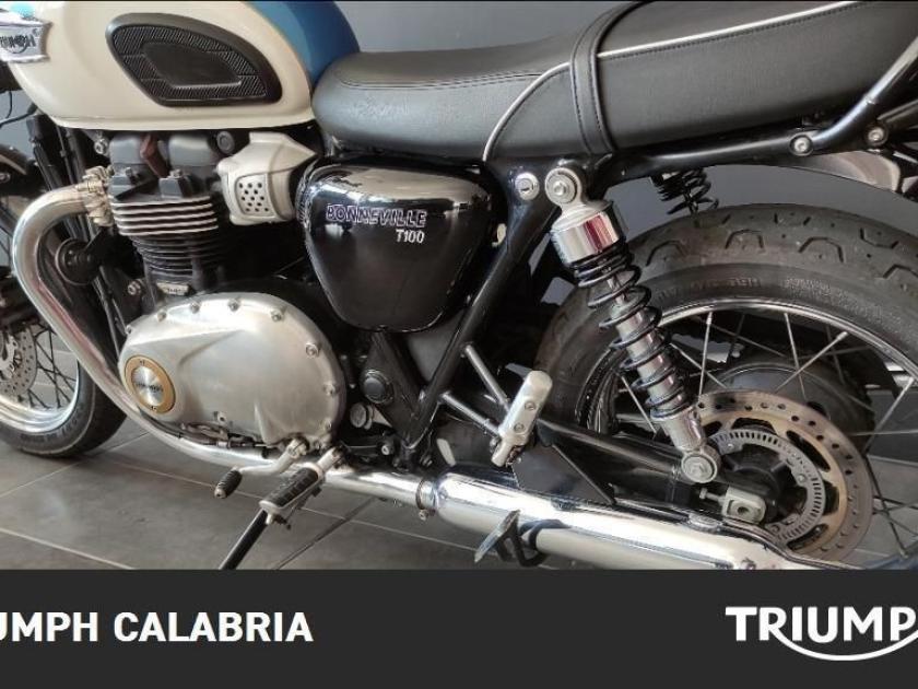 Triumph Bonneville T100 Bicolore: Fusion White/Aegean Blue 04/2018 KM 26300 Varie Formule di Finanziamento a Tasso agevolato Consegna in tutta Italia Isole Comprese Valutazione Permute ACCESSORIATA DI: -Maniglione -Cavalletto Centrale SPECIFICHE TECNICHE: MOTORE E TRASMISSIONE -Motore Bicilindrico parallelo raffreddato a liquido, 8 valvole, SOHC - Cilindrata 900cc -Potenza massima (CE) 55 CV (40,5 kW) a 5.900 giri/min -Coppia massima 80Nm a 3.230 giri/min -Sistema ad Iniezione elettronica sequenziale multipoint -Scarico 2 in 2 in acciaio inossidabile spazzolato con doppi silenziatori -Frizione servoassistita, multidisco in bagno d'olio -Cambio a 5 rapporti -Normativa EURO 4: 89 g/km -Consumo di carburante 3,83 L/100 km TELAIO -Telaio a doppia culla in acciaio tubolare -Forcellone Bibraccio in acciaio tubolare -Cerchi anteriori in acciaio a 32 raggi 18 x 2,75" -Cerchi posteriori in acciaio a 32 raggi 17 x 4,25" -Pneumatici anteriori 100/90-18 -Pneumatici posteriori 150/70-R17 -Sospensione anteriore Forcella KYB da 41 mm, escursione ruota 120 mm -Sospensioni posteriori KYB con ammortizzatore a doppio tubo e precarico regolabile, escursione ruota posteriore 120 mm -Freni anteriori Monodisco flottante da 310 mm, pinza flottante Nissin a 2 pistoncini, ABS -Freni posteriori Monodisco da 255 mm, pinza flottante Nissin a 2 pistoncini, ABS DIMENSIONI E PESO -Larghezza manubrio 715 mm -Altezza senza specchietti 1100 mm -Altezza della sella 790 mm -Interasse 1450 mm -Angolo d'inclinazione 25,5º -Avancorsa 104 mm -Peso a secco 213 kg -Capacità serbatoio 14.5 L INFORMAZIONI AGGIUNTIVE: Maniglione Passeggero