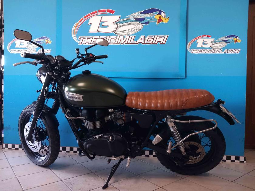 Accessori/note: BELLISSIMA PERSONALIZZAZIONE DELLA NOTA SCRAMBLER TRIUMPH. NESSUNA PARTE MODIFICATA IN MANIERA IRREVERSIBILE. SELLA IN TINTA DESERTO SOUTHGARAGE, MECCANICA ORIGINALE, KIT ASPIRAZIONE SPORTIVA A CONO, SCUDETTI LATERALI A SGANCIO RAPIDO, COLORAZIONE PARTI CROMATE IN NERO SATINATO. CORREDATA DI TELAIETTO PORTAVALIGIA POSTERIORE. SARA' CONSEGNATA TAGLIANDATA E CORREDATA DI GOMME NUOVE DEDICATE ALLA TIPOLOGIA DEL MODELLO.