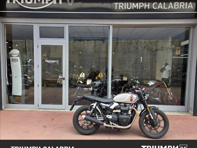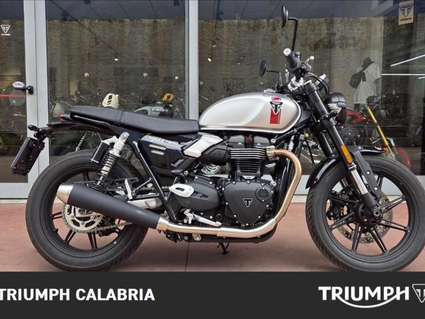 SPEED TWIN 900 Aziendale 07/2025 KM 290 Colore Aluminium Silver/Carnival Red/Jet Black Possibilità di finanziamento e Consegna in tutta Italia MOTORE Motore e Trasmissione Motore Bicilindrico parallelo raffreddato a liquido, 8 valvole, SOHC, manovellismo di 270° Cilindrata 900 cc Alesaggio 84.6 mm Corsa 80 mm Rapporto di compressione 11:1 Potenza Massima (CE) 65 CV (47.8 kW) a 7.500 giri/min Coppia Massima 80 Nm a 3.800 giri/min Sistema di iniezione Iniezione elettronica sequenziale multipoint Scarico Impianto di scarico 2 in 2 in acciaio inossidabile spazzolato, doppi silenziatori con finitura verniciata nera e terminali in acciaio inossidabile spazzolato Trasmissione finale Catena X-ring Frizione Frizione servoassistita, multidisco in bagno d'olio Cambio 5 rapporti TELAIO Telaio Tubolare in acciaio con traversini in acciaio Forcellone Bibraccio, in alluminio Ruota Anteriore In lega di alluminio, multi razze, 18 x 2,75 pollici Ruota Posteriore In lega di alluminio, multi razze, 17 x 4,25 pollici Pneumatico Anteriore 100/90-18 Pneumatico Posteriore 150/70 R17 Sospensione Anteriore Forcelle a steli rovesciati Marzocchi da 43 mm, corsa ruota 120 mm Sospensione Posteriore Doppio ammortizzatore posteriore Marzocchi con serbatoi esterni, precarico regolabile, corsa ruota 116 mm Freno Anteriore Disco flottante da 320 mm, pinza radiale Triumph a 4 pistoncini, ABS Cornering Freno Posteriore Monodisco da 255 mm, pinza flottante Nissin monopistoncino, OCABS Strumentazione e Funzioni Strumentazione multifunzione LCD con display TFT a colori integrato DIMENSIONI E PESO Larghezza Manubrio 777 mm Altezza Senza Specchietti 1115 mm Altezza Sella 780 mm Interasse 1435 mm Angolo di Inclinazione 24.9 º Avancorsa 103 mm Capacità Serbatoio 12 L Peso in ordine di marcia 216 kg Consumo Carburante 4.0L/100km Emissioni CO2 EURO 5+ Intervallo di manutenzione 16.000 KM o 12 mesi, a seconda della condizione che si verifica prima. DOTAZIONI DI SERIE ABS e controllo trazione ottimizzati per il controllo in curva 2 modalità di guida: Road e Rain Strumentazione multifunzione LCD con display TFT a colori integrato Presa USB-C sulla strumentazione Indicatori di direzione con disattivazione automatica Display temperatura ambiente Commutatore anabbagliante/luci diurne automatico (in base alle condizioni di luce) Faro anteriore a LED con luci diurne DRL