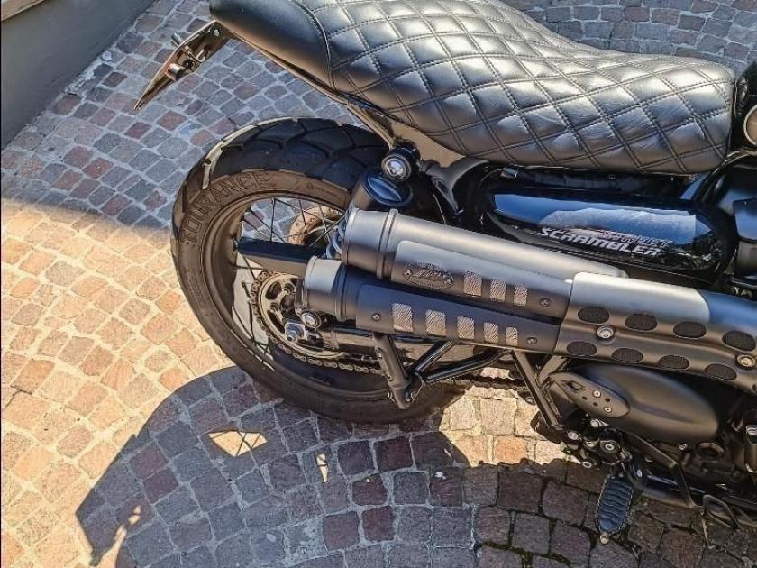 TRIUMPH STREET SCRAMBLER 900, colore Nero, Top di gamma delle Modern Classic Medie di casa Triumph. Moto con Soli 6079km. Moto in Ottime condizioni. Pneumatici al 80%. Sevice uffuciali. Monta scarico Zard ceramicato nero, sella in cuoio a rombi, kit portatarga con frecce multifunzione e rimozione parafango, barre paramotore nere, specchietti bar-end, painting serbatoio in doppia finitura grigio goffrato-nero, oltre griglia faro anteriore. MOTO IN CONTOVENDITA, NON SI ACCETTANO PERMUTE. Visionabile presso Triumph Milano in via Eugenio Brizi, 4. Per maggiori informazioni 02/57306990