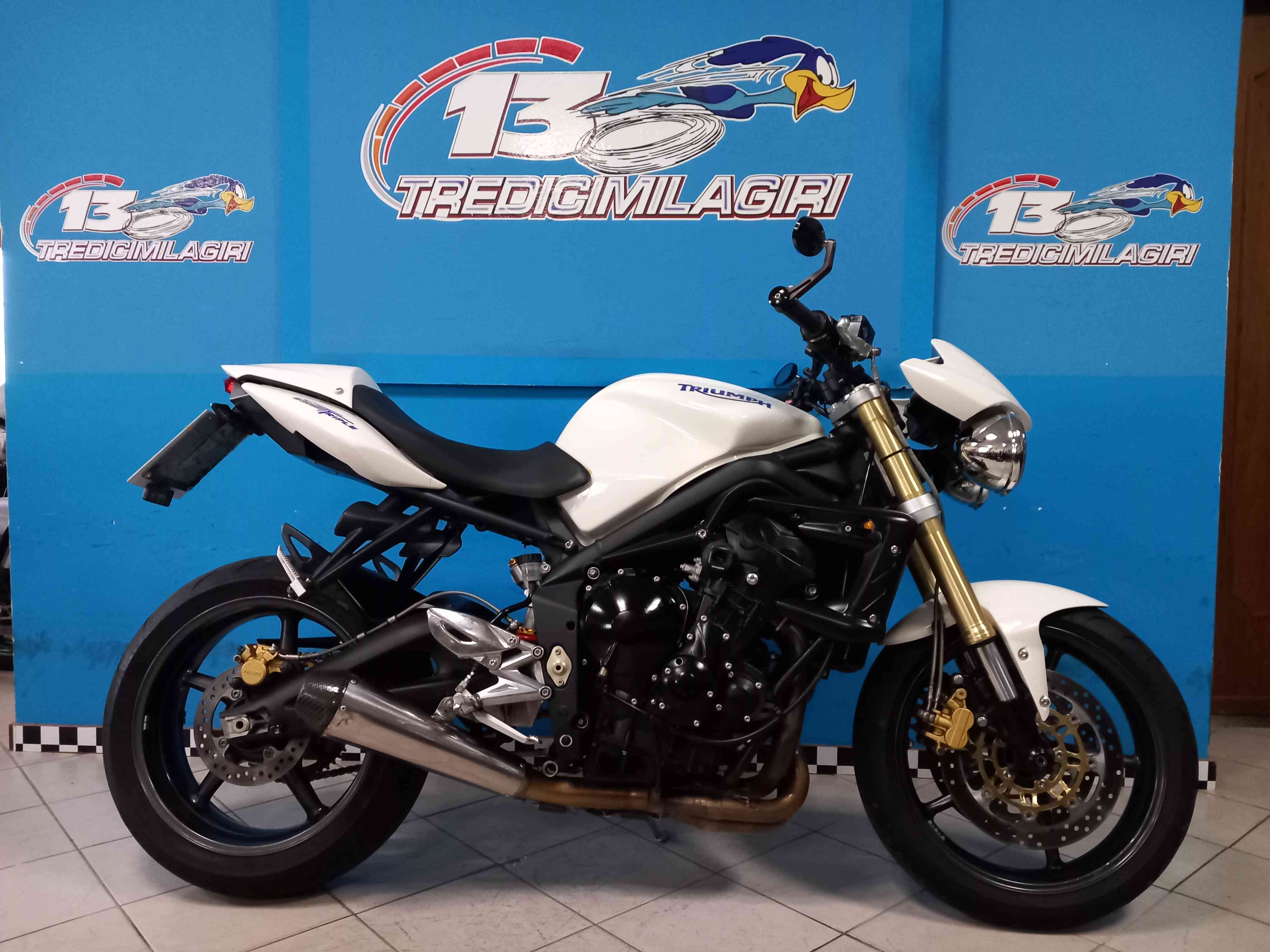 Accessori/note: BELLISSIMA SPORTIVA NAKED DI CASA TRIUMPH. UN "MUST" TRA LE TRICILINDRICHE AD ALTA ROTAZIONE. STREET TRIPLE 675 WHITE PEARL. PRONTA PER L'UTILIZZO, DIFFERENTI INTERVENTI LA MIGLIORANO RENDENDOLA PIU' PERFORMANTE DELLA OMONIMA VERSIONE "R". SCARICO BASSO EXAN OMOLOGATO CON MAPPATURA DEDICATA, FILTRO ARIA BMC, SPECCHIETTI ENDBAR,MONOAMMORTIZZATORE EXTREME CON QUATTRO REGOLAZIONI, CARTUCCE FORCELLE ANTERIORI OHLINS, MANUBRIO PIEGABASSA, PRESA USB E CONTROLLO DIGITALE STATO BATTERIA, TAMPONI PARACOLPI RIZOMA, FRECCE LED OMOLOGATE, SOTTOCODA CON PORTATARGA SPORT REGOLABILE, UNGHIA MONOPOSTO.