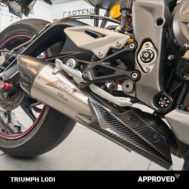 TRIUMPH STREET TRIPLE 765RS IN PERFETTE CONDIZIONI ACCESSORI: - Scarico Zard + originale - Sonda yat - Filtro aria - Nottolini cavalletto - Paratelaio - Cupolino fumè - Paraserbatoio PRONTA CONSEGNA INTERAMENTE FINANZIABILE Visionabile presso CARTENI MOTO Lodi, Viale Milano 69. Per maggiori informazioni: tel: 0371/098030 mail: info@moto.carteni.it whatsapp: 391/3507373 Alessandro INFORMAZIONI AGGIUNTIVE: quickshifter, tamponi paratelaio, scarico sportivo, Avviamento Elettrico, Marmitta Catalitica