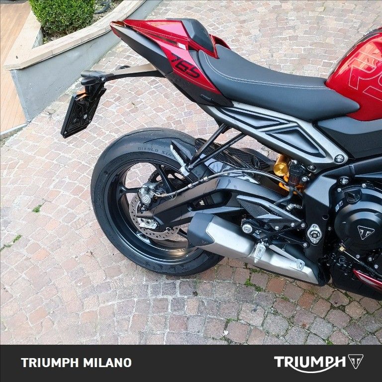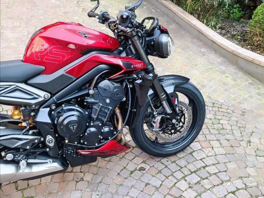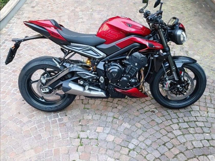 TRIUMH STREET TRIPLE RS 765, colore Rosso, Top di gamma delle roadster medie di casa Triumph. Moto con SOLI 1241km. Moto in condizioni PARI NUVO. Monta Triumph Ammortizzatore di sterzo Ohlins, paratacchi pesane e parafango posteriore in carbonio. Singolo proprietario. Storico manutentivo Triumph. Pneumatici al 90%. Visionabile presso Triumph Milano in via Eugenio Brizi, 4. Per maggiori informazioni 02 9974 8923