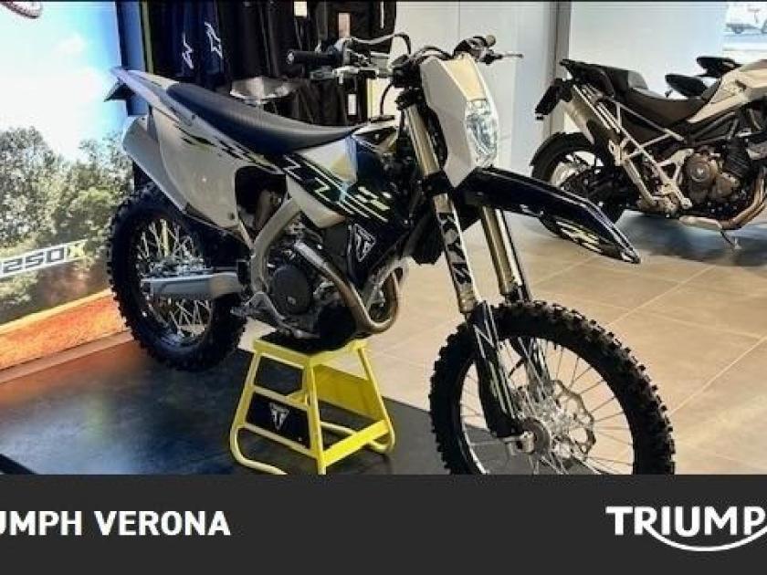 TRIUMPH TF 450-E MY26 KM0 IN PROMO FINO AD ESAURIMENTO SCORTE CON UN OFFERTA RICAMBI FENOMENALE 1.000 € DI RICAMBI RACING INCLUSI NEL PREZZO Cartuccia filtro olio N*3 Air Filter , Foam , Assy, Spare N*2 Air Filter Wash Cover N*1 Kit pastiglie freno ant. N*2 Kit pastiglie freno post. N*1 Catena trasmissione finale ,520,114L N*1 Pignone , 13 denti N*1 Corona , 48 denti N*1 Manopole dx e sx N*1 Kit plastiche , MX N*1 Air Filter Rain Cover N*1 Air Filter Sand Cover N*1 Coprisella con Gripper N*1 Kit Pistone e Guarnizione N*1 Dotazioni di serie: Sospensione KYB Enduro-tune Freni Brembo Cerchi D.I.D DirtStar e Pneumatici Michelin Enduro 2 Telaio in alluminio leggero Due Mappatura Motore (Athena) Tecnologia all'avanguardia che include controllo di trazione, launch control, quickshifter MOTORE Con 58.6 CV di potenza e 49.3 Nm di coppia, questo propulsore garantisce un ampio arco di erogazione con una spinta corposa ai bassi regimi. Grazie alla messa a punto pensata per le gare, questo motore è in grado di allungare fino a 10.500 giri per scatenare tutta la sua potenza su qualsiasi percorso. MOTO IN PRONTA CONSEGNA Cosa aspetti passa a trovarci nella nuova sede in Via Flavio Gioia 5 37135 ( VR ) Cristian Responsabile vendite On - Off road WhatsApp : 393-9048697 Mail : cristian.zanoni@triumphverona.it