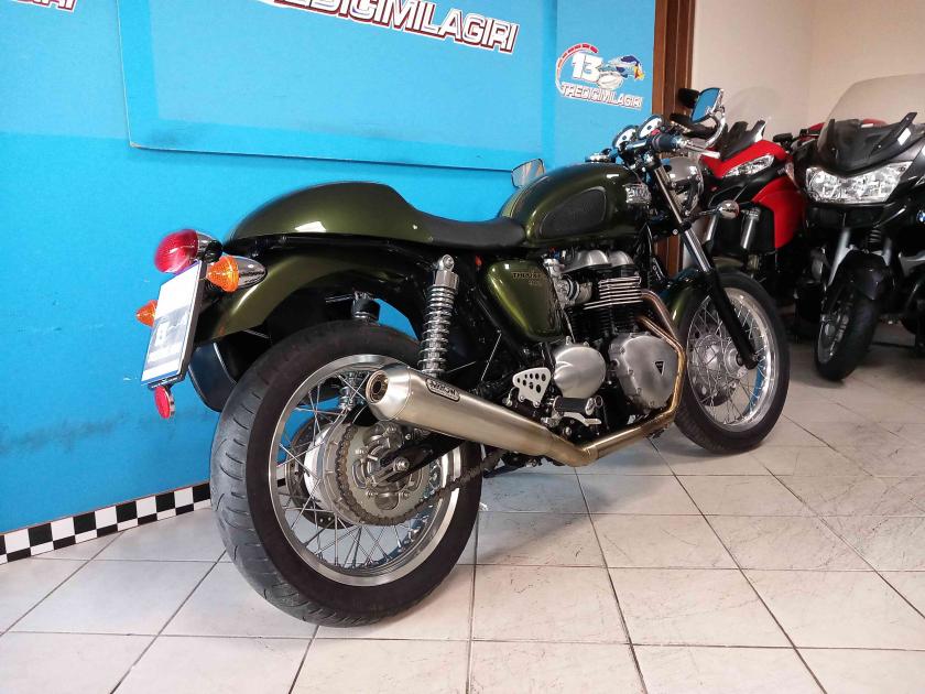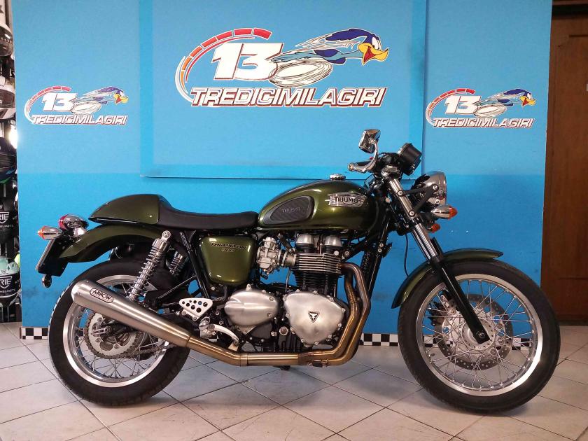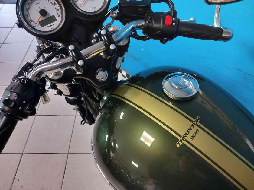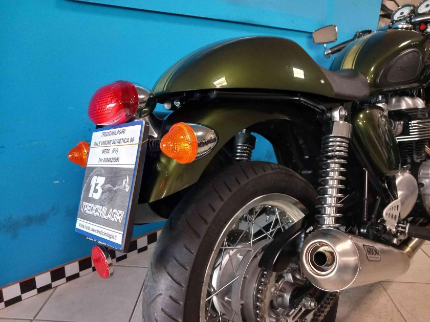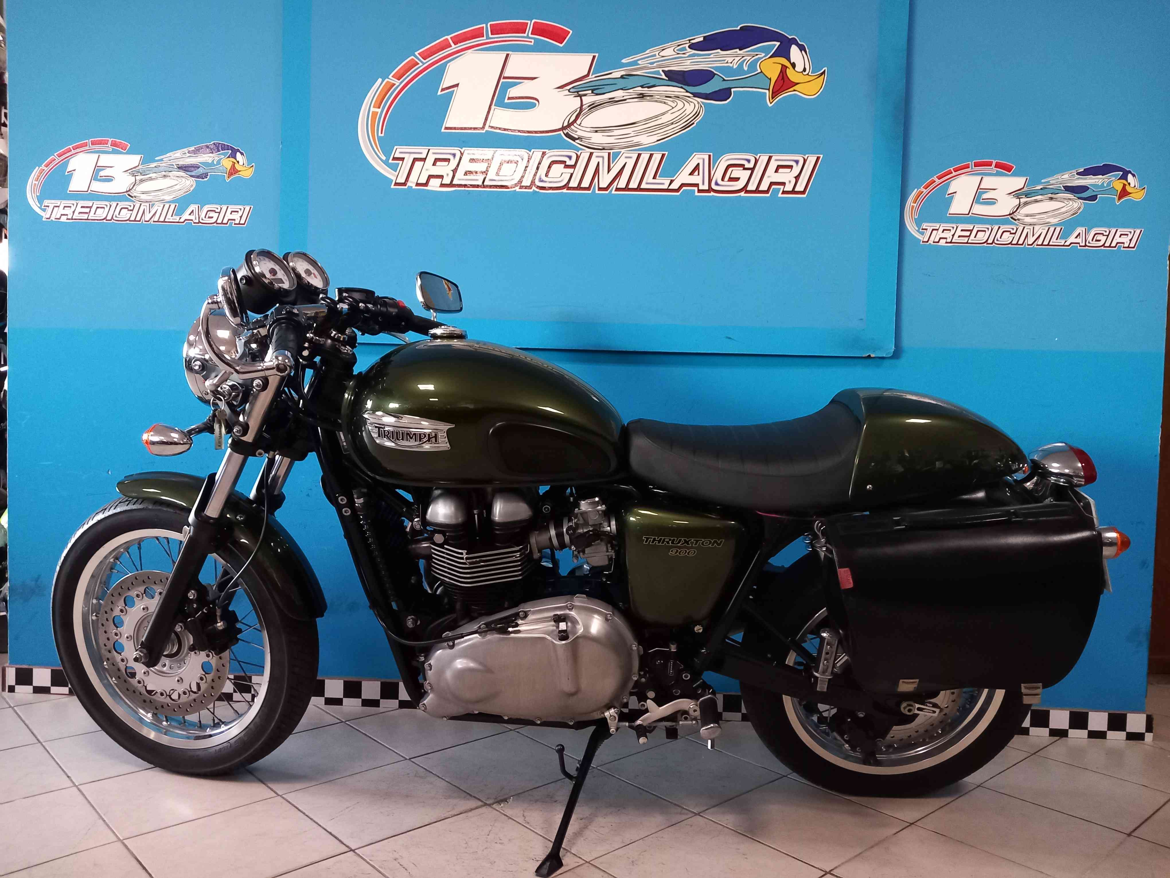 Accessori/note: BELLISSIMA ED IN CONDIZIONI DA VETRINA TRIUMPH THRUXTON 900 INIEZIONE. UNICOPROPRIETARIO. 9000 KM CON TAGLIANDI CERTIFICATI, COMPLETAMENTE ORIGINALE IN UNA SPLENDIDA LIVREA ENGLAND GREEN RACING. RIFINITA DA SCARICO ARROW DEDICATO BY TRIUMPH + ORIGINALE, BORSA LATERALE IN PELLE, UNGHIA MONOPOSTO. TUTTE LE PARTI SONO ORIGINALI COMPRESI I MAGNIFICI SPECCHIETTI RICHIUDIBILI DEDICATI AL MODELLO. L'OFFERTA COMPRENDE LA MOTO PRONTA SU STRADA CORREDATA DI TRENO PNEUMATICI NUOVO. LE GOMME CHE MONTA SONO ANCORA QUELLE DI PRIMO CORREDO.