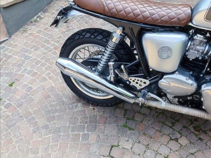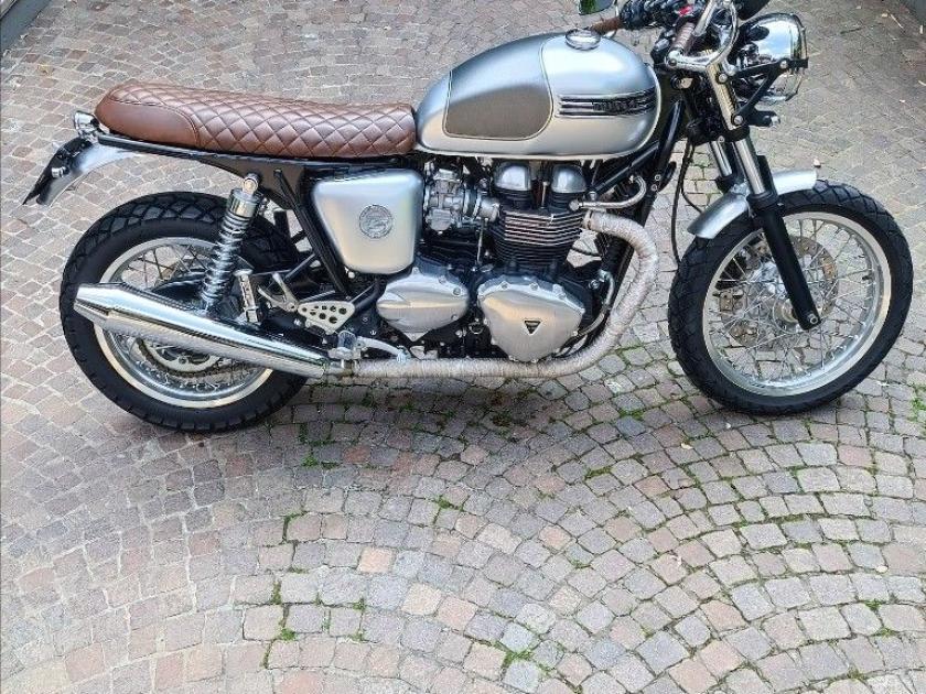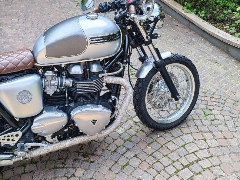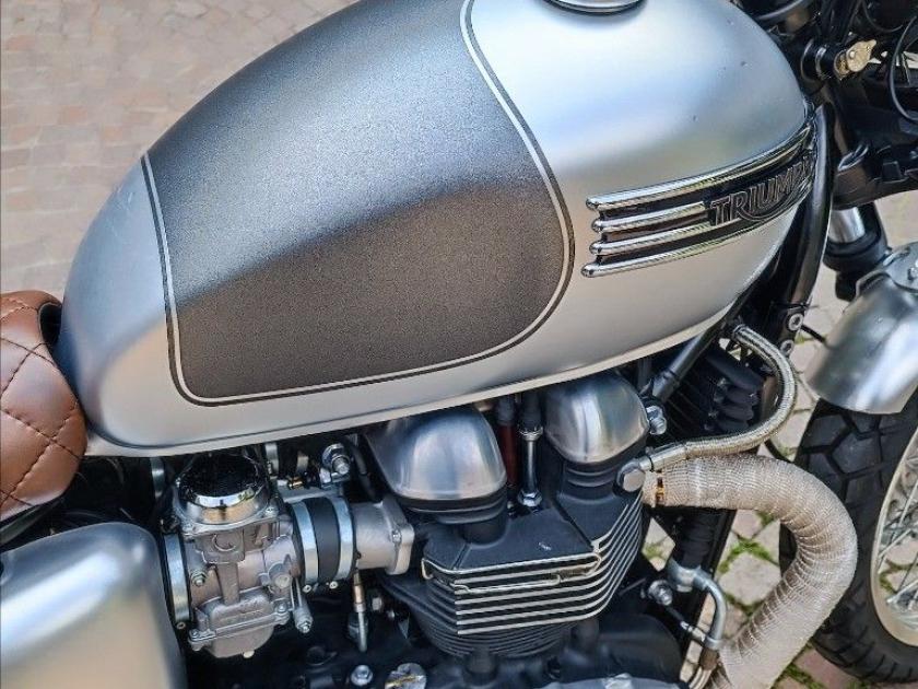 TRIUMPH THRUXTON 865, colore Grigio, Top di gamma delle Cafè Racer di casa Triumph. Moto con SOLI 6495km. Moto in condizioni eccellenti. Pneumatici al 90%. Completamente personalizzata dal nostro Alelier South Garage con painting integrale argento in doppia finitura e fregi serbatoio 4 barre cromati, sella in cuoio a rombi, frecce a led Apollo Classic, manopole in cuoio in abbinamento alla sella, carter motore, coperchio testa e cerchi in alluminio spazzolati, bende scarichi, specchietti bar-end, gliglia faro, oltre parafanghi anteriori e posteriorio in alluminio spazzolato con portatarga corto. Storico Ducati. MOTO IN CONTOVENDITA, NON SI ACCETTANO PERMUTE. Visionabile presso Triumph Milano in via Eugenio Brizi, 4. Per maggiori informazioni 0257306990.