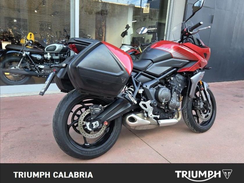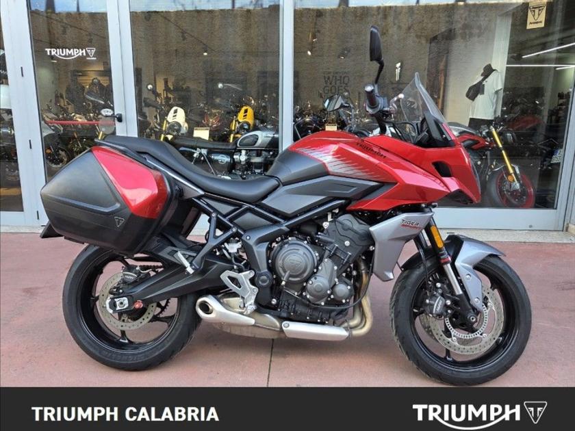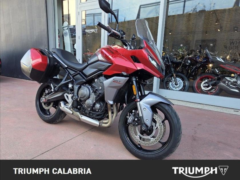 Triumph Tiger Sport 660 Colore Korosi Red KM 34.400 07/2023 Possibilità di finanziamento a tasso agevolato e Consegna in tutta Italia ACCESSORIATA DI BORSE LATERALI CON PANNELLI IN TINTA CARATTERISTICHE Motore Motore a tre cilindri da 660 cc (Euro 5) Frizione Frizione assistita antisaltellamento Controllo di trazione Acceleratore ride-by-wire con traction control disinseribile Modalità di guida 2 modalità di guida (Road e Rain) Shift Assist Triumph Shift Assist (optional) Sospensioni Forcella a steli rovesciati Showa e monoammortizzatore posteriore con regolazione remota del precarico. Freni Pinze freno Nissin con ABS Cerchi e pneumatici Pneumatici Michelin Road 5 Strumentazione Strumentazione multifunzione con display TFT personalizzabile Connettività Sistema di connettività My Triumph (optional) Illuminazione Luci a LED, con indicatori di direzione a spegnimento automatico Servizio 16.000 KM o 12 mesi, a seconda della condizione che si verifica prima.