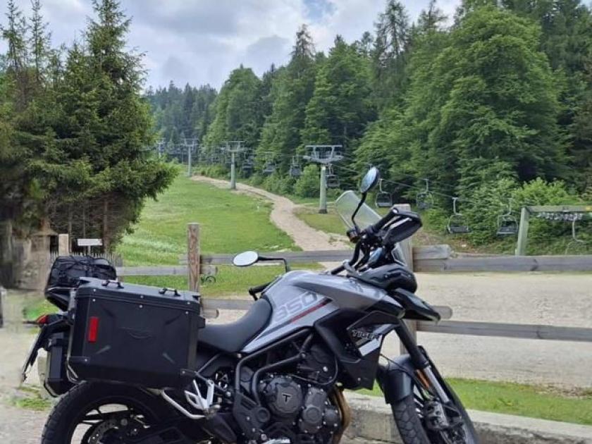 Triumph Tiger Sport 850 del 2023 con 6500 km, incluso nel prezzo vi sono le borse laterali in alluminio nere. La moto è bella come nelle foto.