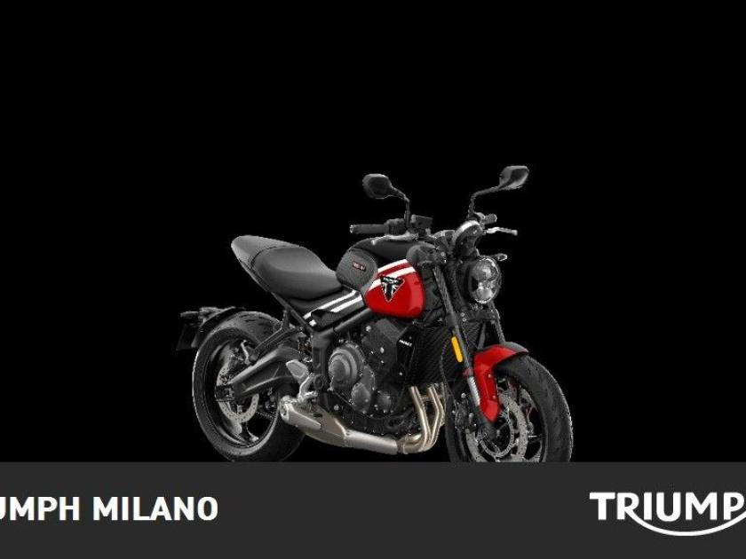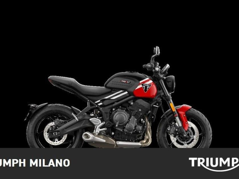 TRIUMPH TRIDENT 660, colore Nero-Rosso, Top di gamma delle roadster entry level di casa Triumph. Moto DEMO con SOLI 150km. Pneumatici al 100%. Visionabile presso Triumph Milano in via Eugenio Brizi, 4. Per maggiori informazioni 02 9974 8923.