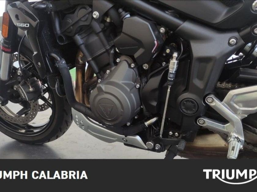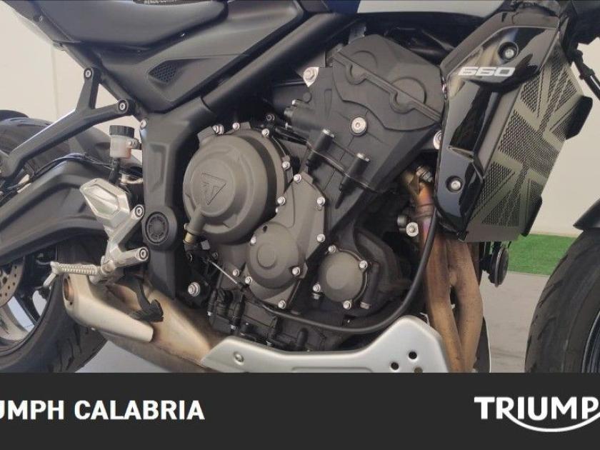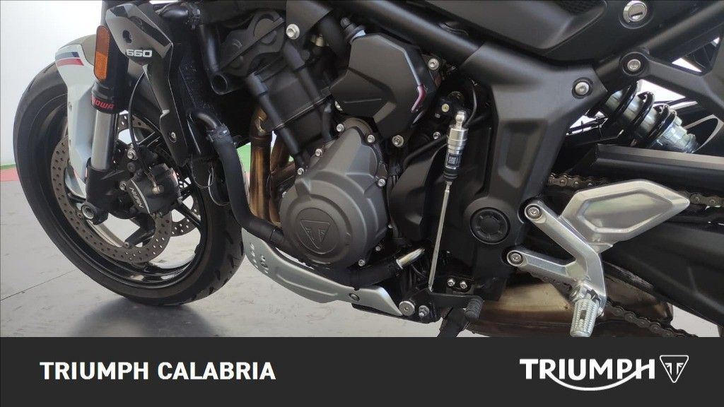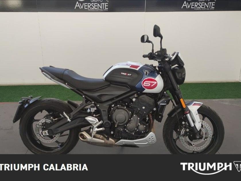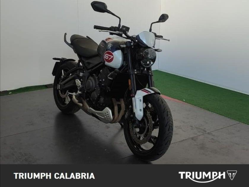 TRIUMPH TRIDENT TRIBUTE EDITION 11/2024 KM 16.200 Possibilità di finanziamento e Consegna in tutta Italia OPTIONAL SPECCHIETTI MANIGLIONI PARASERBATORIO MOTORE E TRASMISSIONE Motore Raffreddato a liquido, 12 valvole, doppio albero a camme in testa, 3 cilindri in linea Cilindrata 660 cc Alesaggio 74,0 mm Corsa 51,1 mm Rapporto di compressione 11,95:1 Potenza Massima (CE) 81 CV (60 kW) a 10.250 giri Coppia Massima 64 Nm a 6.250 giri Sistema di Iniezione elettronica sequenziale multipoint con SAI con controllo elettronico dell'acceleratore Scarico Collettore di scarico in acciaio inossidabile 3 in 1 con silenziatore basso in acciaio inossidabile Trasmissione finale Catena X-ring Frizione Multidisco in bagno d'olio, antisaltellamento, assistita Cambio 6 rapporti TELAIO Telaio perimetrale in acciaio tubolare Forcellone Bibraccio in acciaio Ruota Anteriore In lega di alluminio, 17 x 3,5" Ruota Posteriore In lega di alluminio, 17 x 5,5" Pneumatico Anteriore 120/70R17 Pneumatico Posteriore 180/55R17 Sospensione Anteriore Forcella Showa da 41 mm, a steli rovesciati, con funzioni separate (SFF) Sospensione Posteriore Monoammortizzatore Showa, con regolazione del precarico Freno Anteriore Doppio disco da 310 mm con pinze scorrevoli Nissin a 2 pistoncini, ABS Freno Posteriore Monodisco da 255 mm, pinza scorrevole Nissin monopistoncino, ABS Strumentazione e Funzioni Strumentazione multifunzione con display TFT a colori DIMENSIONI E PESO Larghezza Manubrio 795 mm Altezza Senza Specchietti 1089 mm Altezza Sella 805 mm Interasse 1401 mm Angolo di Inclinazione 24,6 º Avancorsa 107,3 mm Capacità Serbatoio 14 L Peso in ordine di marcia 189 kg Consumo Carburante ** 4.5 l/100km) Intervallo di manutenzione 16.000 KM o 12 mesi, a seconda della condizione che si verifica prima. Accessori MANIGLIONI PARASERBATORIO