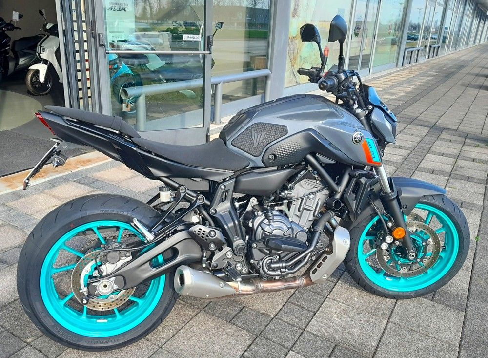 Yamaha MT07 35kw, unico proprietario, tagliandati ufficiali, gomme nuove, estensione garanzia ufficiale fino a 03/2031, con i seguenti accessori originali: cambio quick shift, kit protezioni motore, cupolino, supporti per cavalletto centrale, portatarga sportivo.