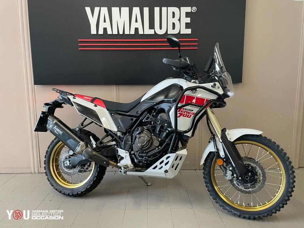 Ténéré 700 Rally Editiom in buone condizioni. Passaggio di proprietà a carico dell'acquirente. Nel prezzo incluso il tagliando pre consegna e garanzia Ufficiale al 10/2027. Utilizzato anche in fuoristrada. Tagliandi: Certificati Yamaha Accessori: Barre paramotore, Protezione fanale, Paracoppa maggiorato, Pedane Rally Atelier, Copricatena in alluminio, Portapacchi (Di serie: Sella rally dedicata, Akrapovic, protezioni fianchetti in gomma, cerchi Gold) Precedenti proprietari: 1