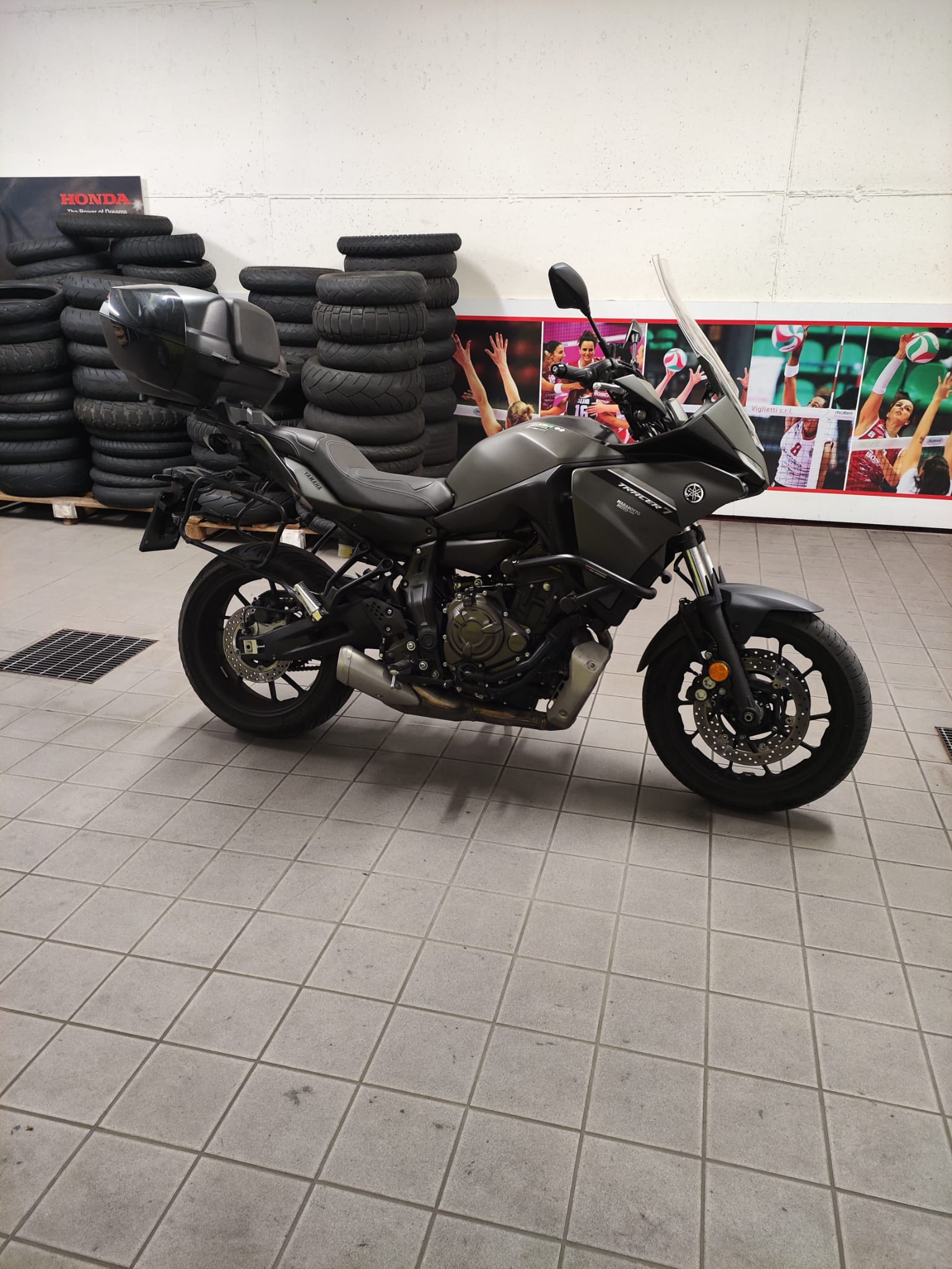 Mezzo accessoriato con: sella comfort, portapacchi + bauletto posteriore con schienale Yamaha, telaietti Givi sgancio rapido per valigie laterali, barre paramotore SW-motech, parabrezza Givi + originale.