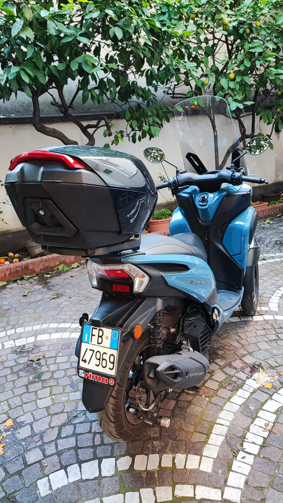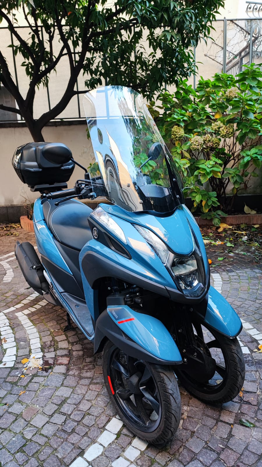 Scooter a tre ruote della Yahama, Colore Blu metallizzato